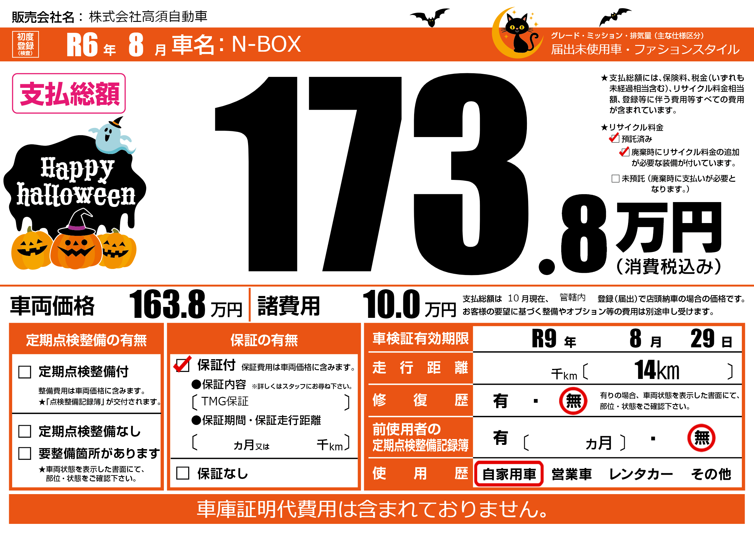 保証付き 保証内容(TMG保証) ---ヶ月または()千kmまで |