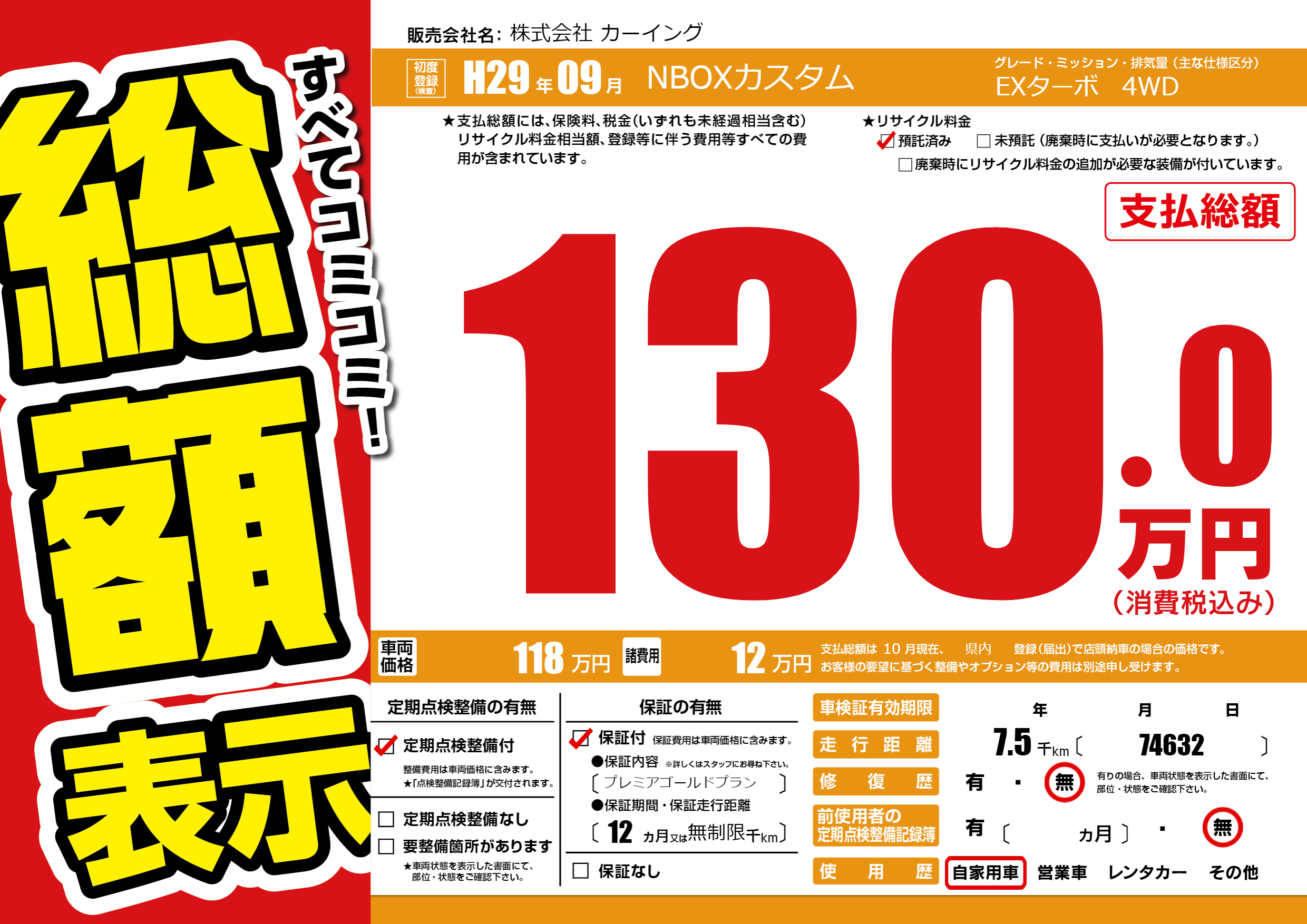 | 車名 | NBOXカスタム | グレード ミッション 排気量 |