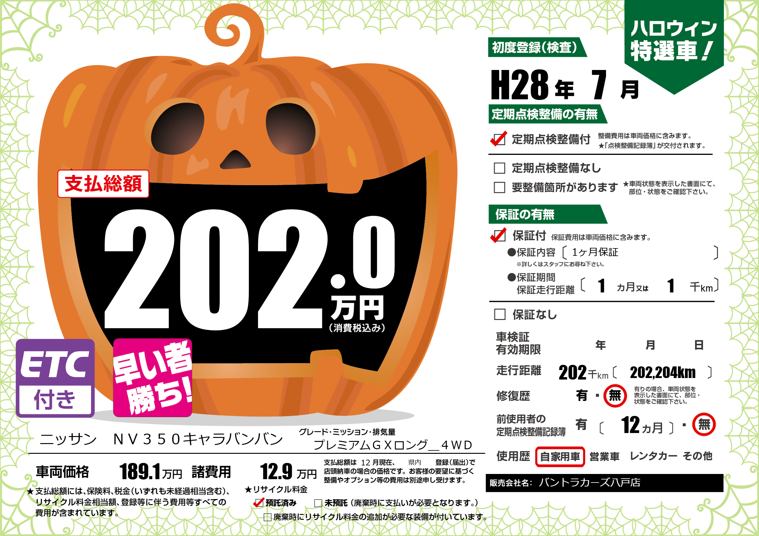 | 走行キロ | 20.2万km | 初年度登録 | H28年7月 |