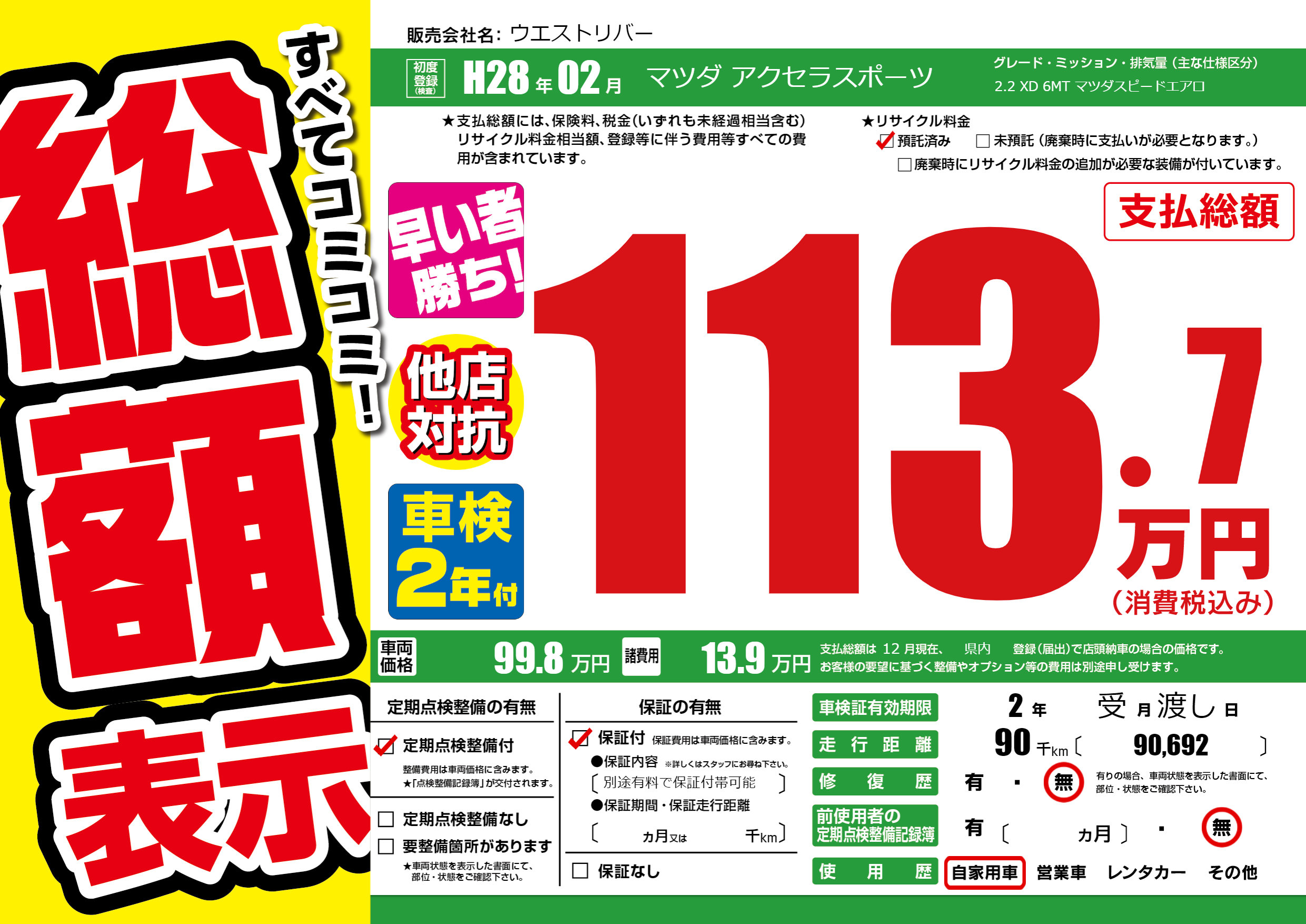 なし | 車検制限 | 2年受月渡し月 |