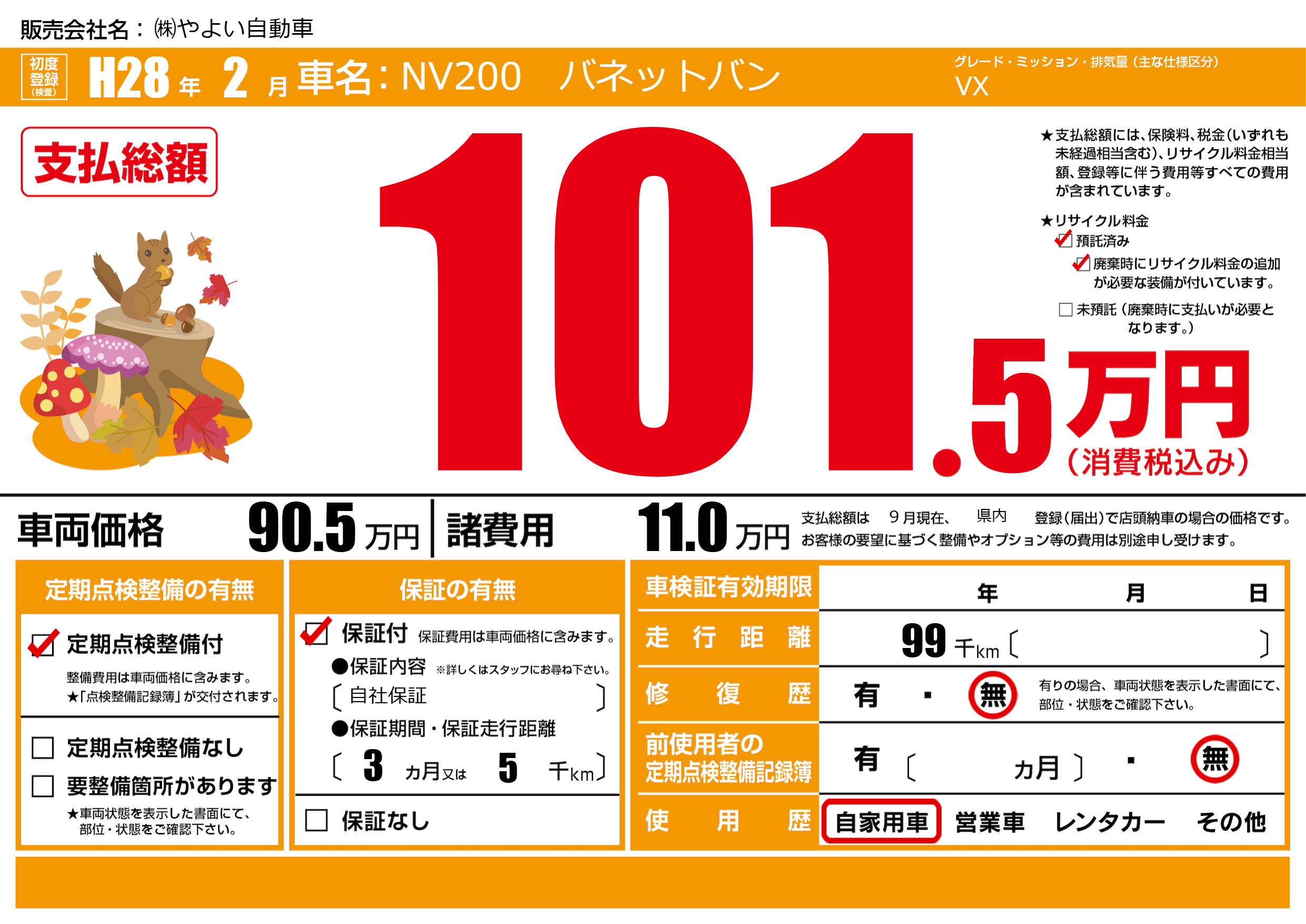 保証付き 保証内容(自社保証) 3ヶ月または5千km |
