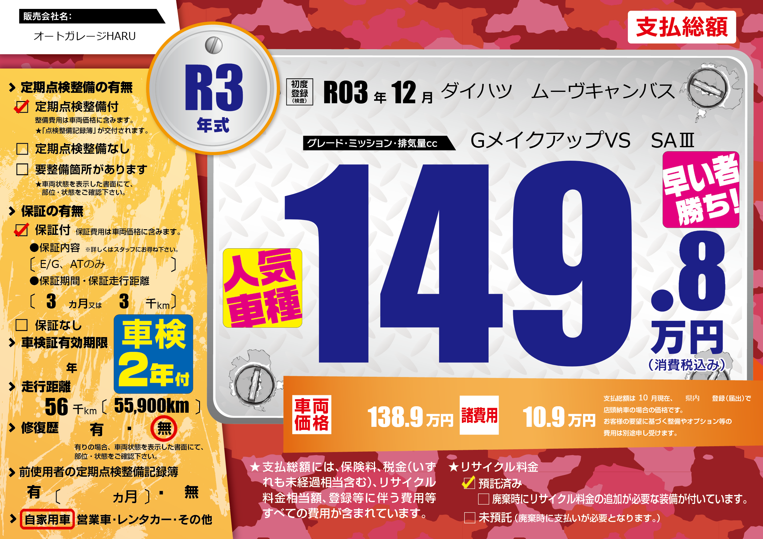 | 初年度登録 | R03年12月 | ||