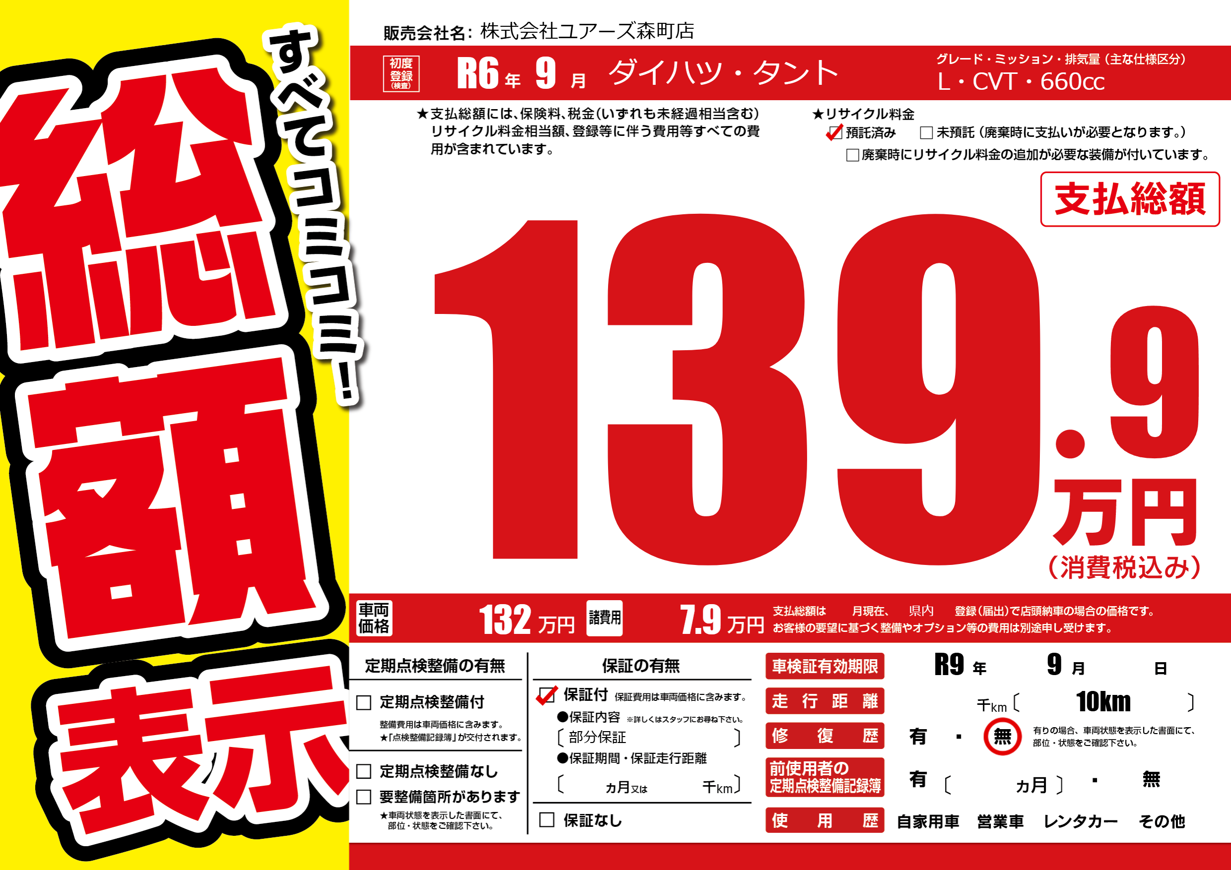 なし | 車検制限 | R9年9月---月 |