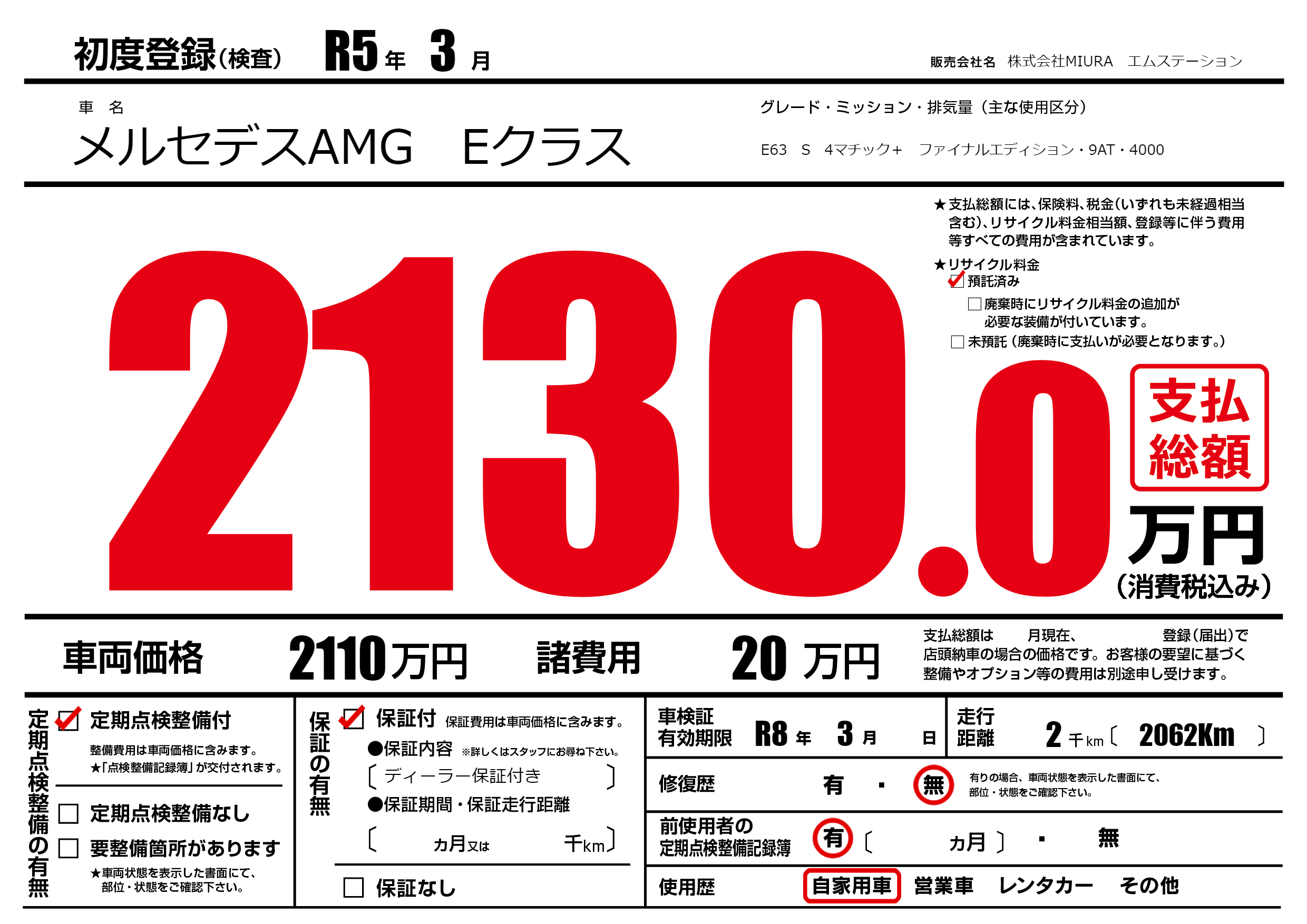 なし | 車検制限 | R8年3月---月 |