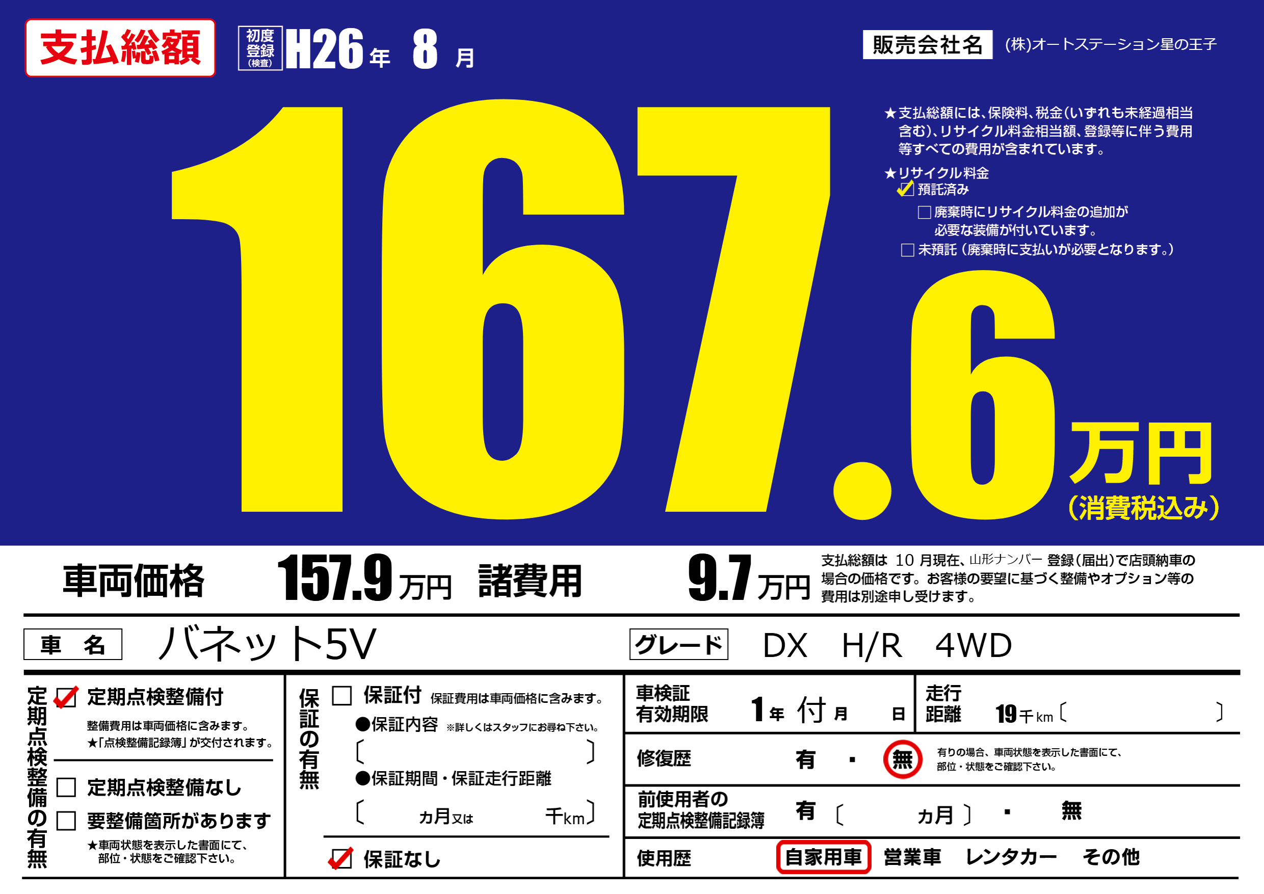 | 車名 | バネット5V | グレード ミッション 排気量 |