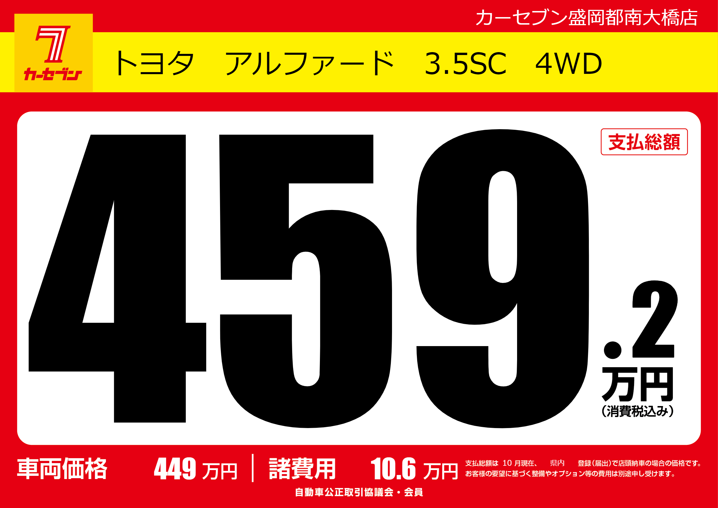 | 車名 | トヨタ アルファード 3.5SC 4WD | グレード ミッション 排気量 |