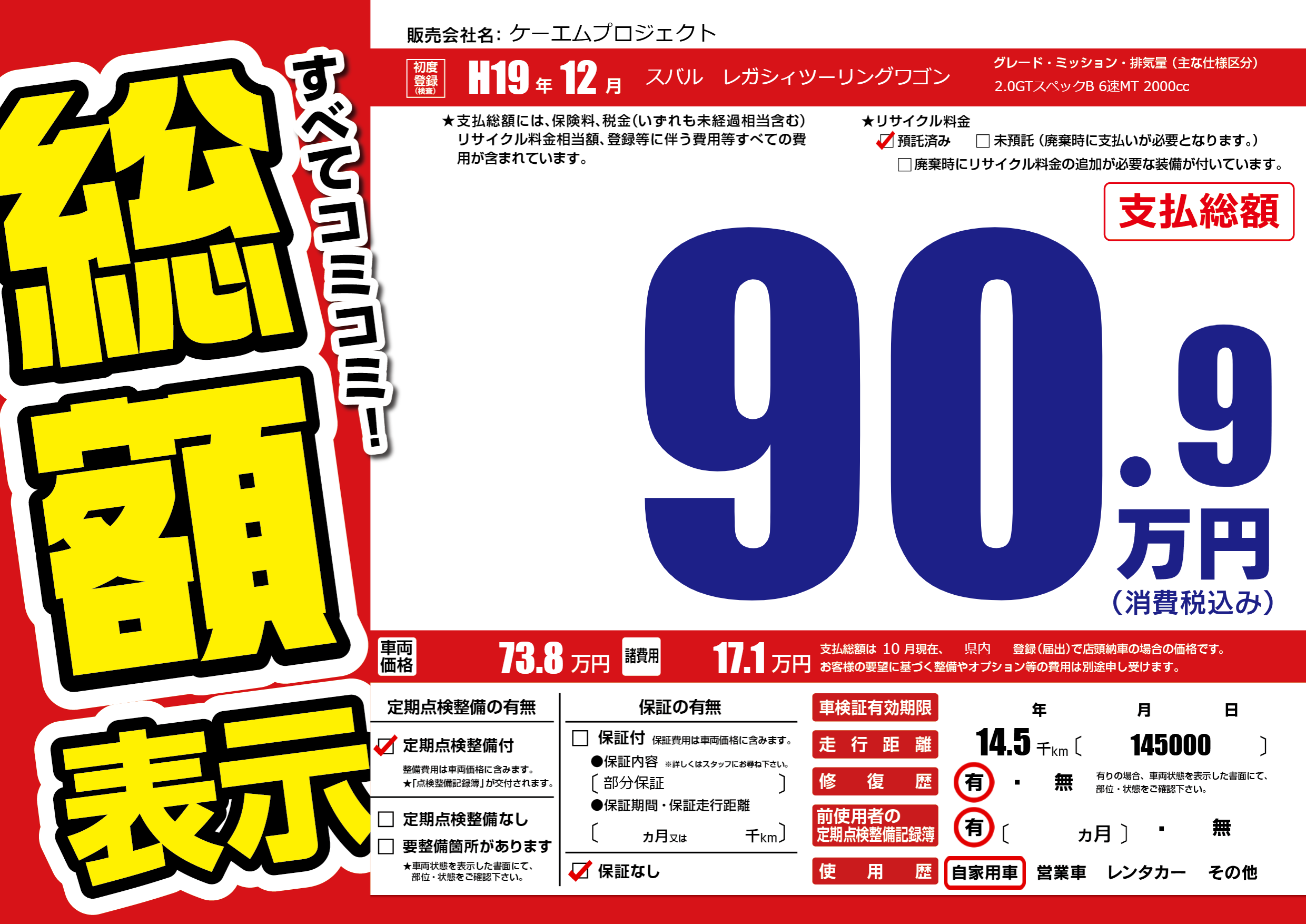 | 定期点検整備 | 定期点検整備あり | ||