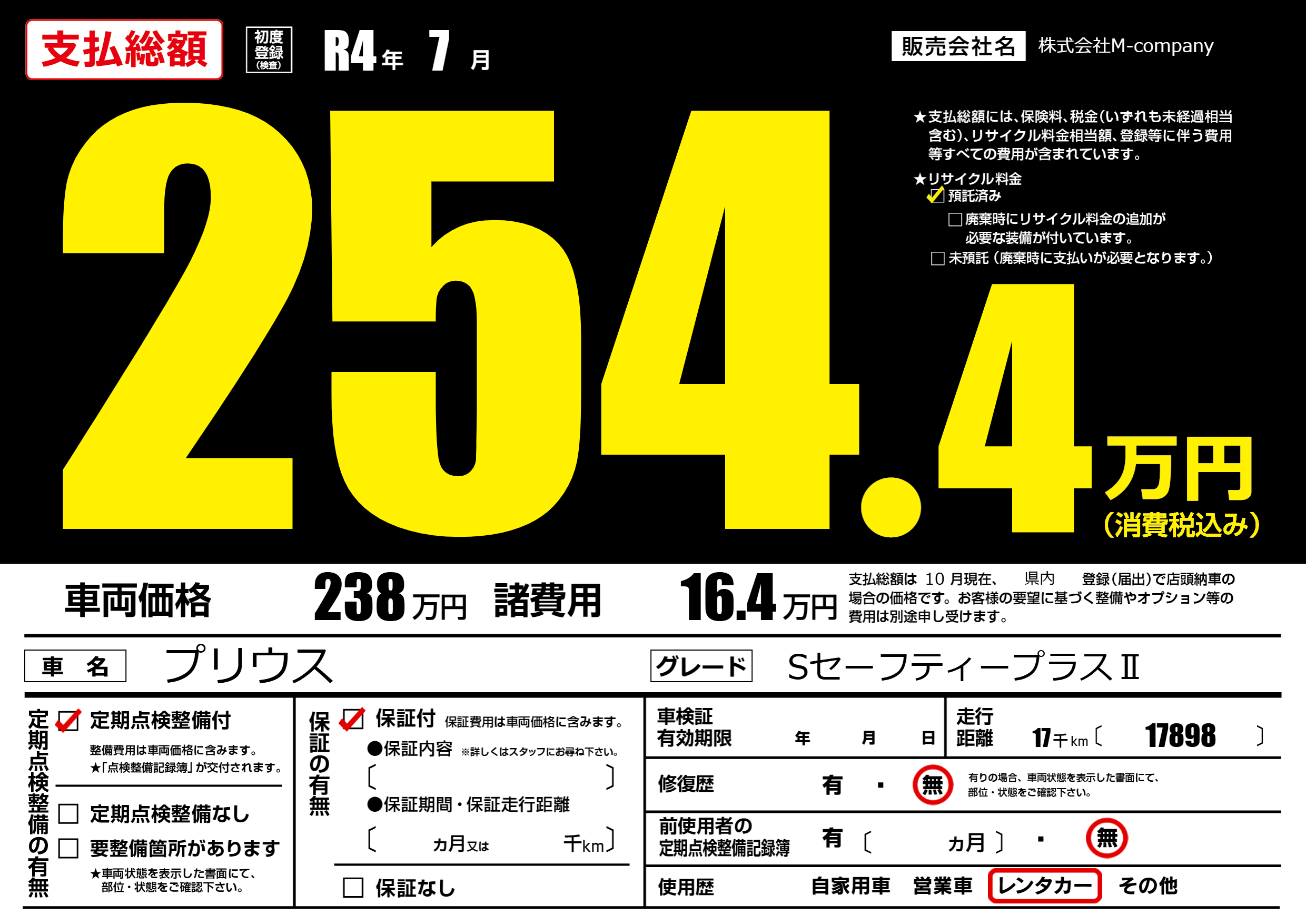 | リサイクル料金 預託済 |