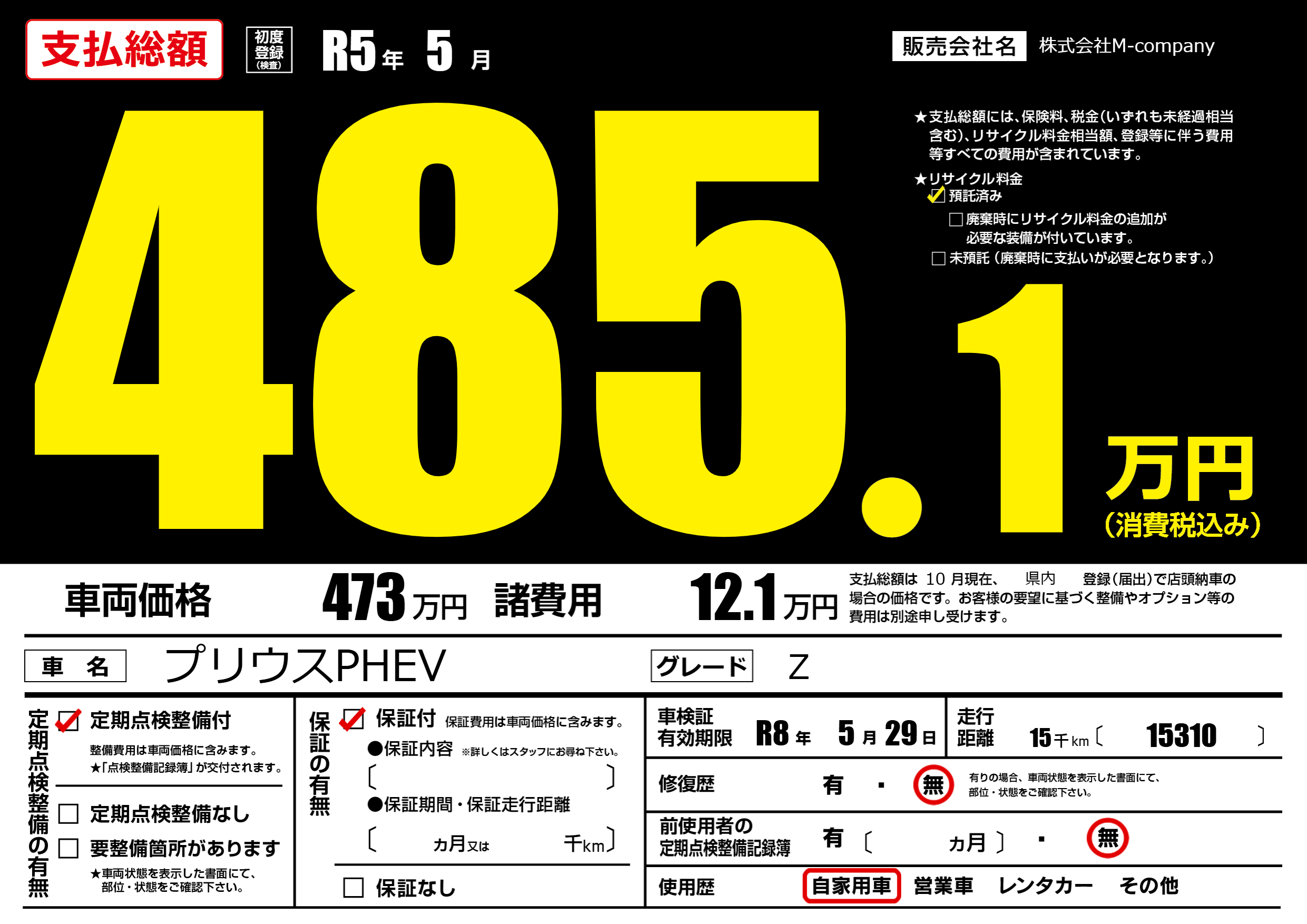| リサイクル料金 預託済 |