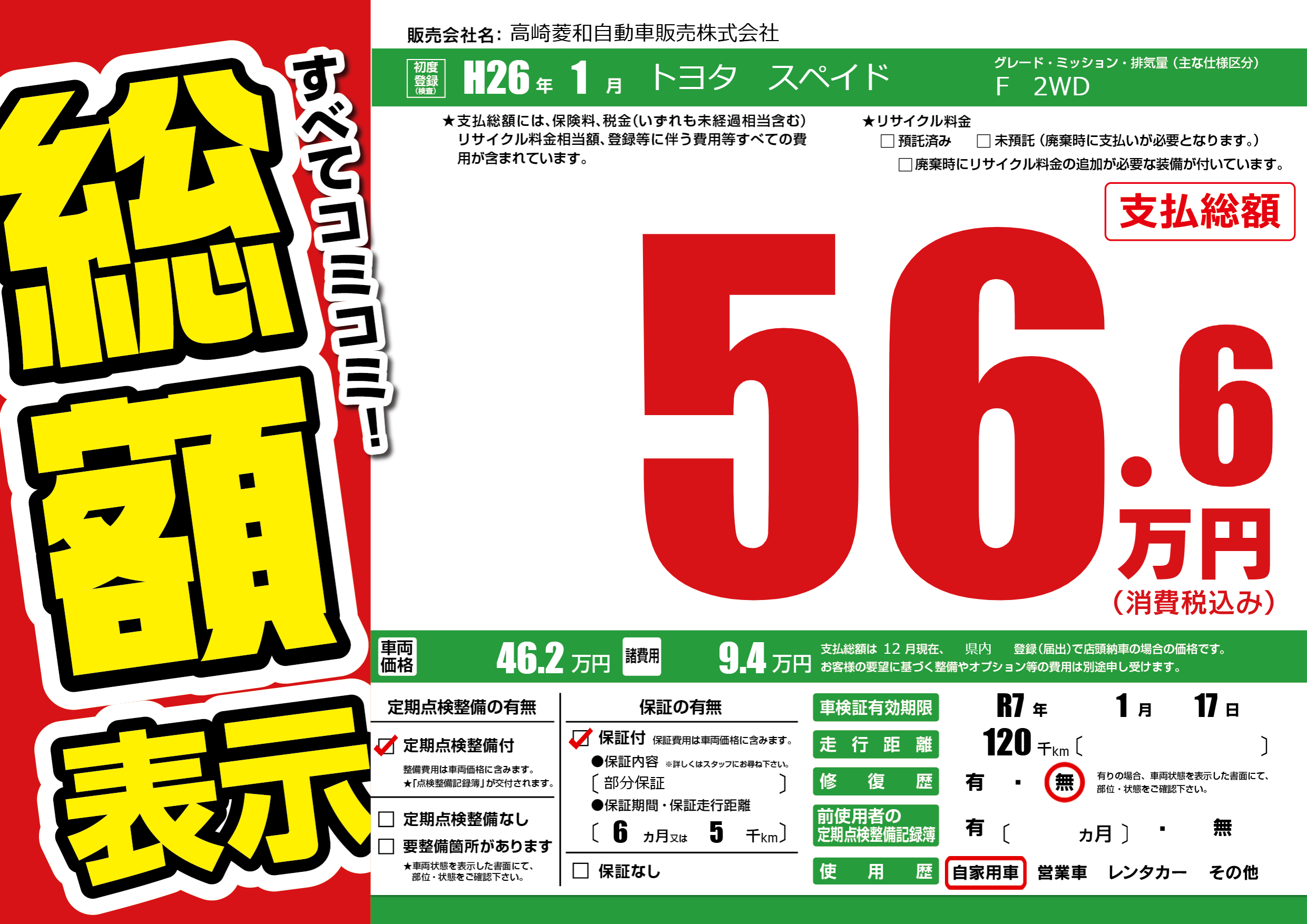 なし | 車検制限 | R7年1月17月 |