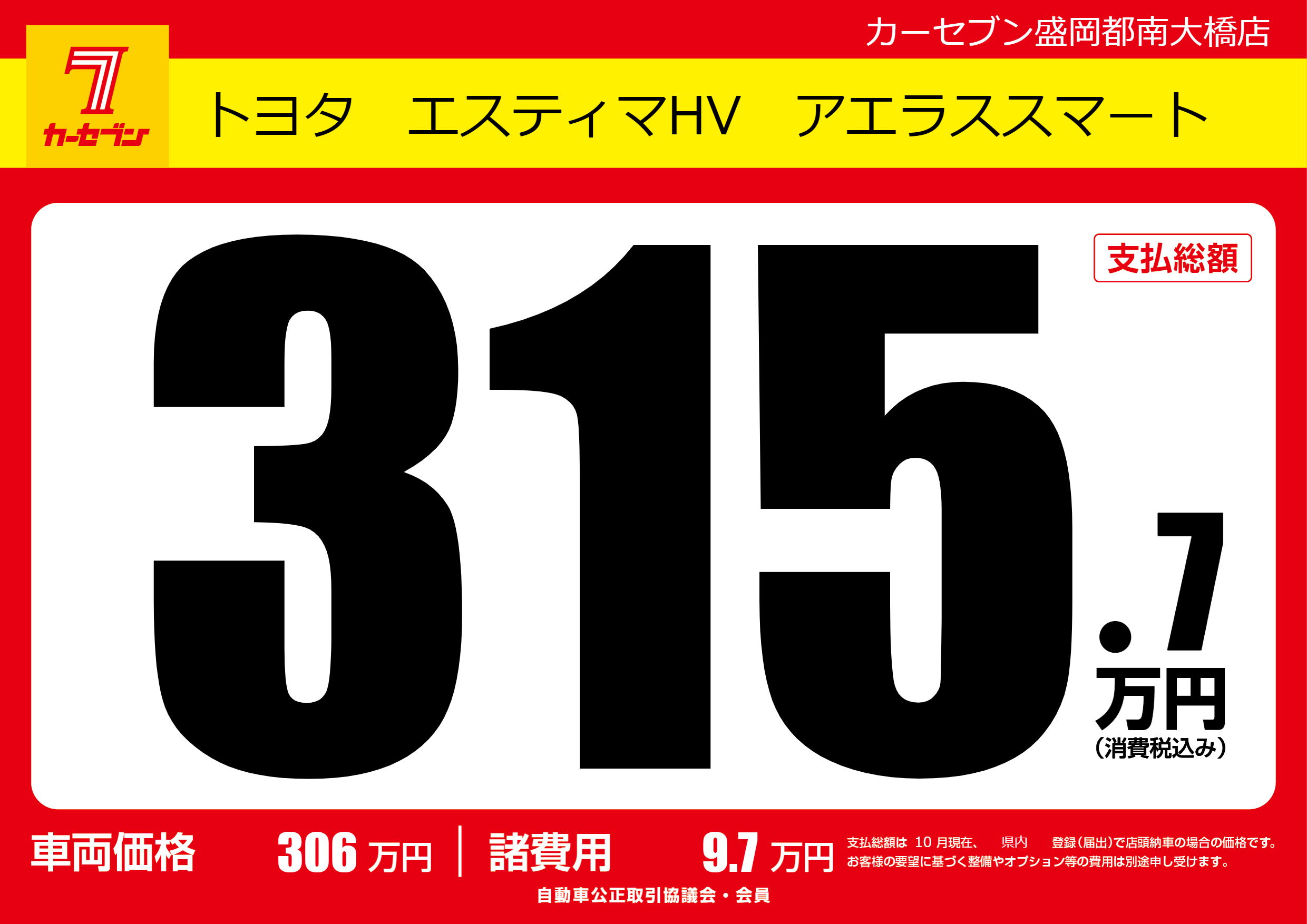 | 車名 | トヨタ エスティマHV アエラススマート | グレード ミッション 排気量 |