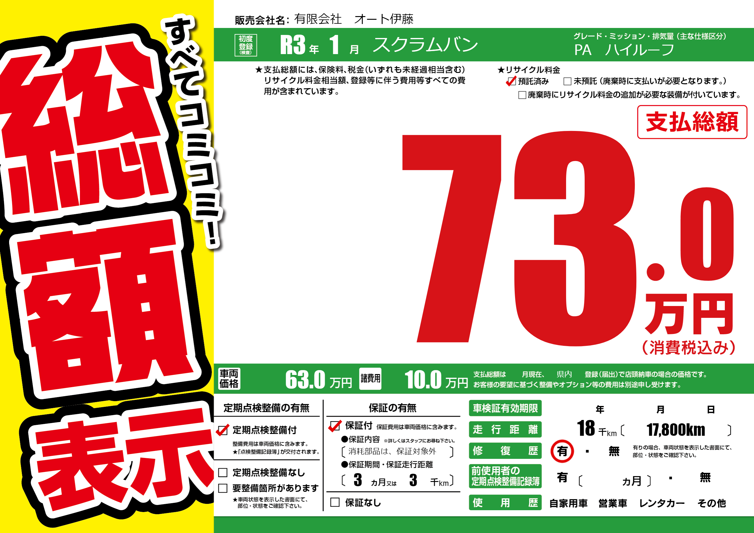 | 車名 | スクラムバン | グレード ミッション 排気量 |
