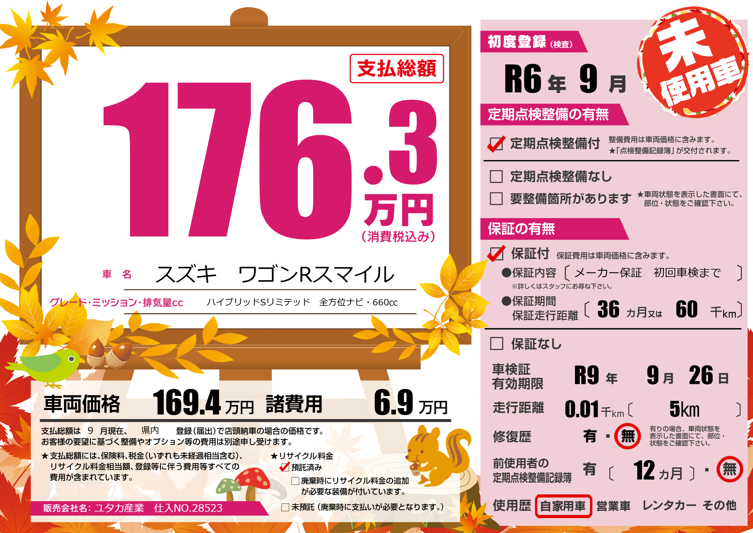 なし | 車検制限 | R9年9月26月 |