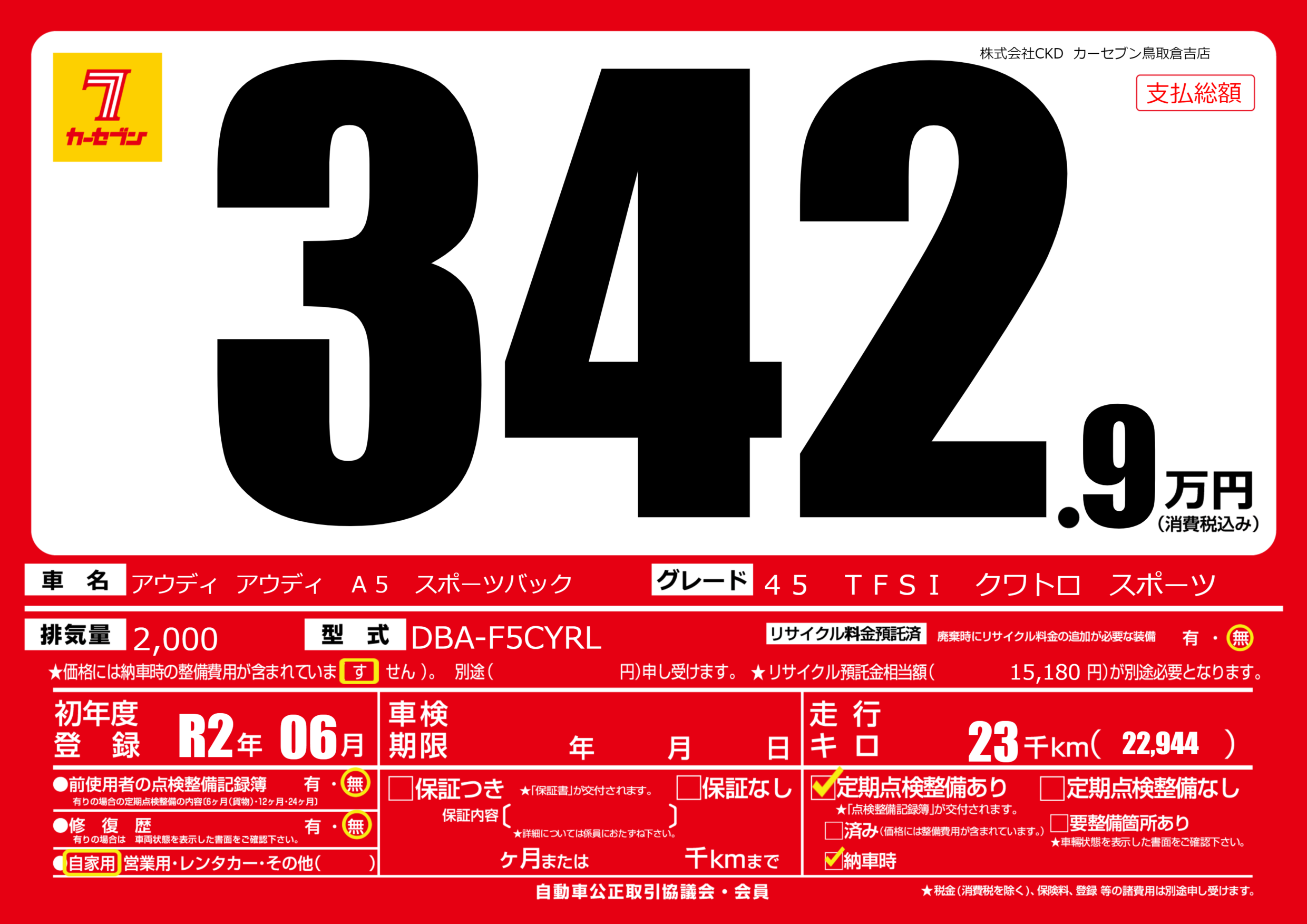 | 走行キロ | 2.3万km | ||