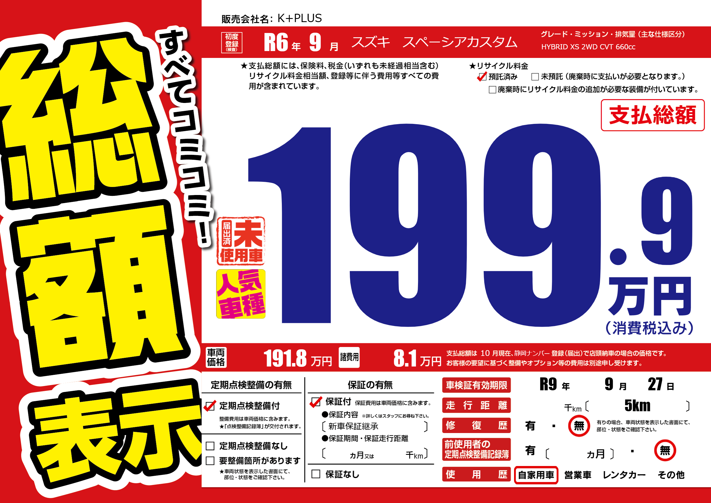 なし | 車検制限 | R9年9月27月 |