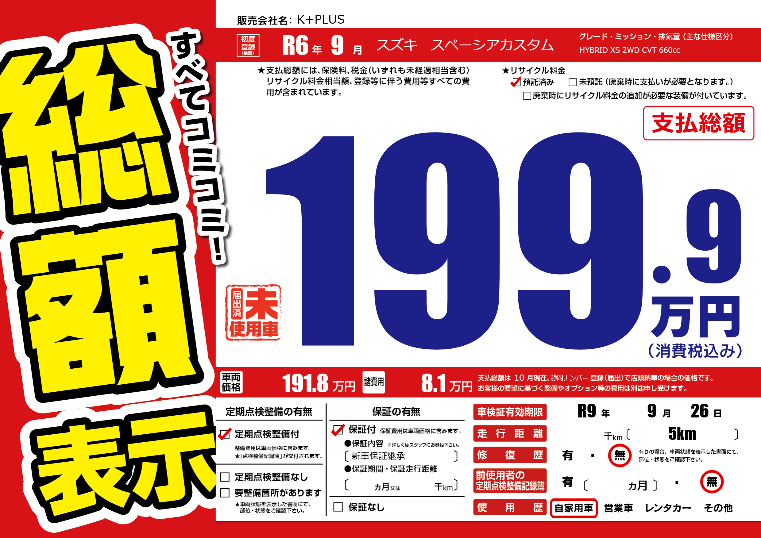 なし | 車検制限 | R9年9月26月 |
