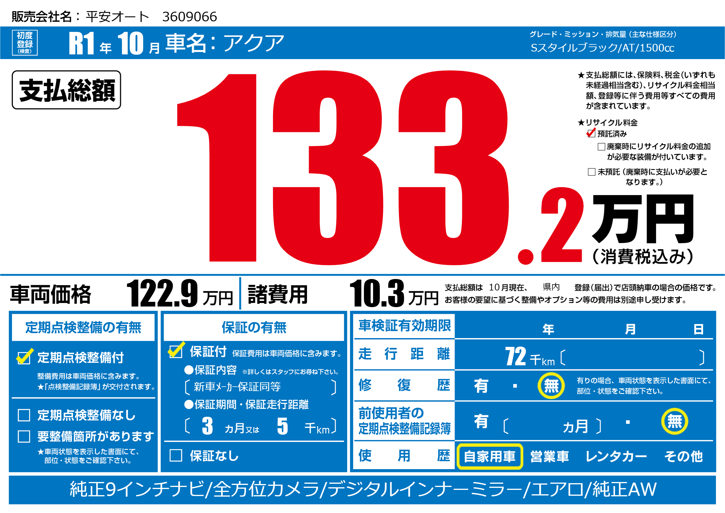 | 定期点検整備 | 定期点検整備あり | ||