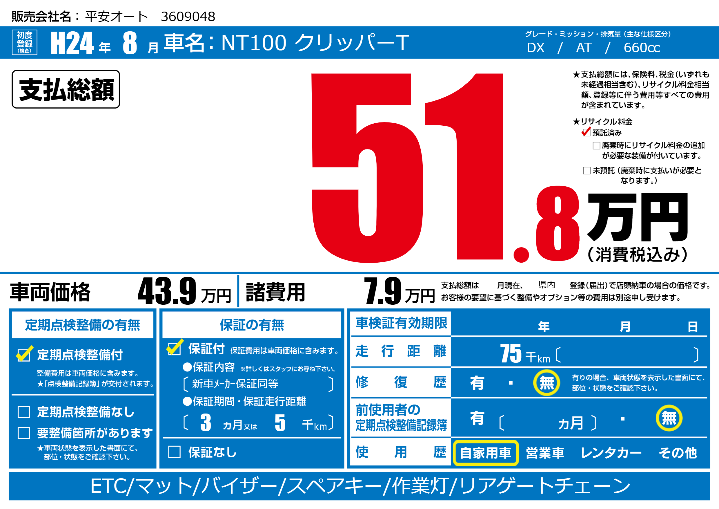 | 走行キロ | 7.5万km | ||