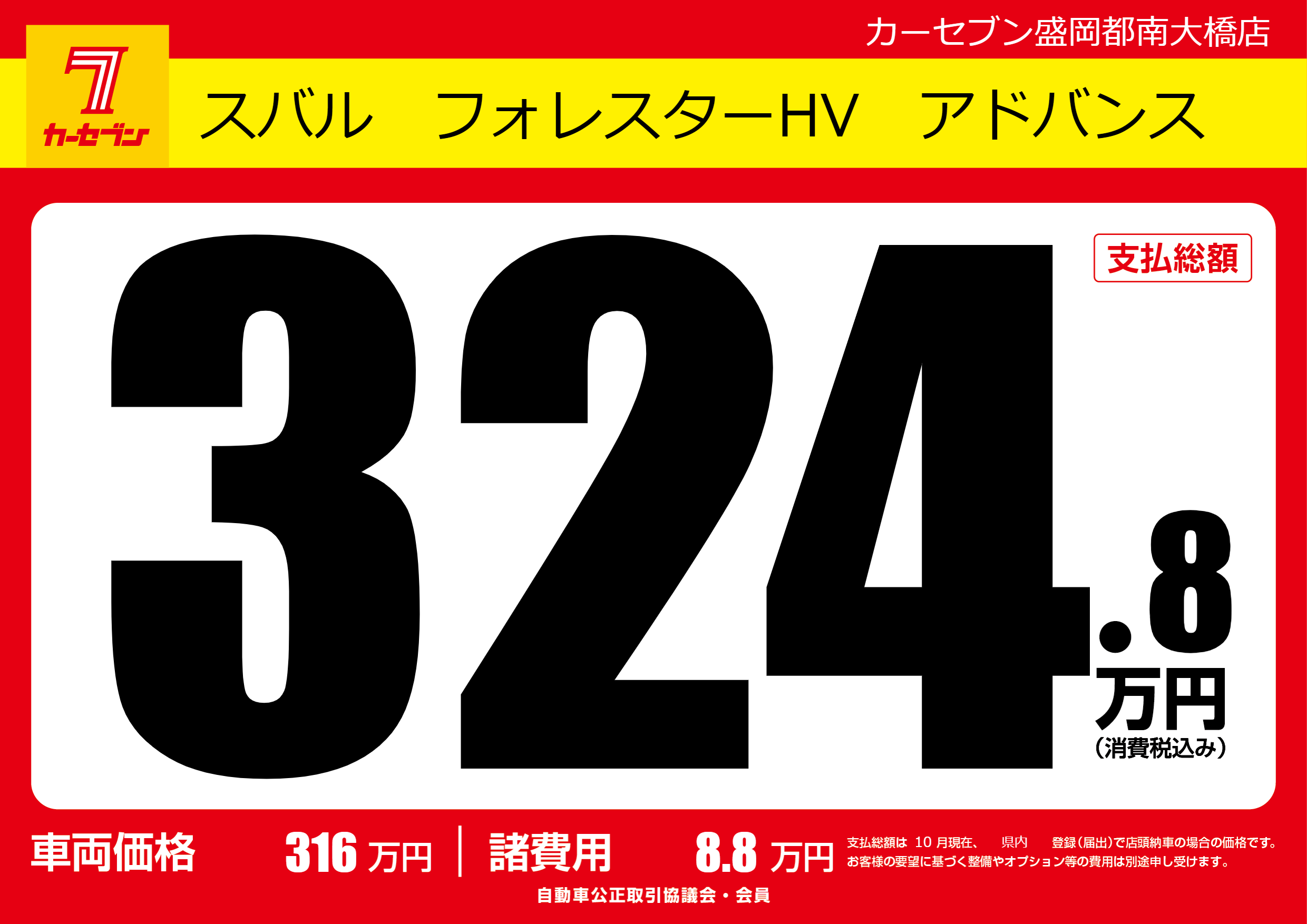 | 車名 | スバル フォレスターHV アドバンス | グレード ミッション 排気量 |