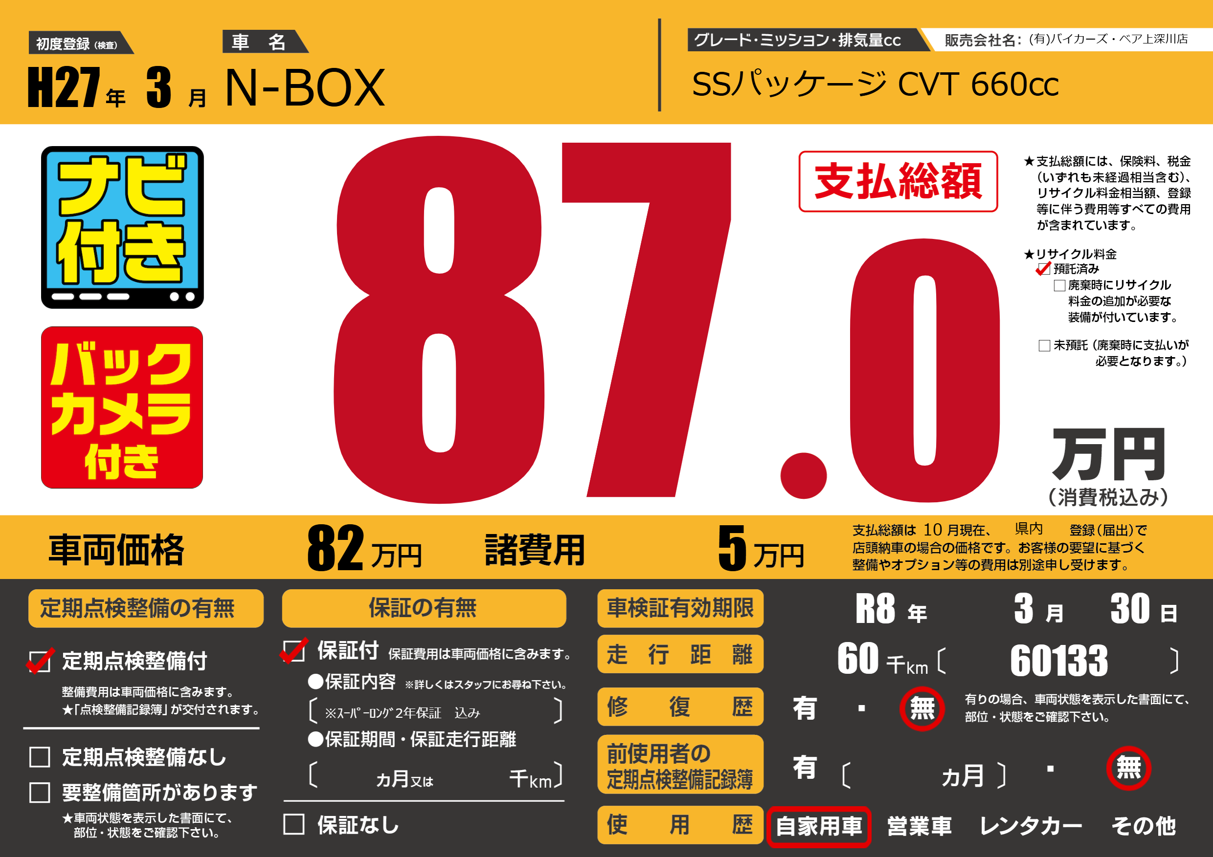 なし | 車検制限 | R8年3月30月 |