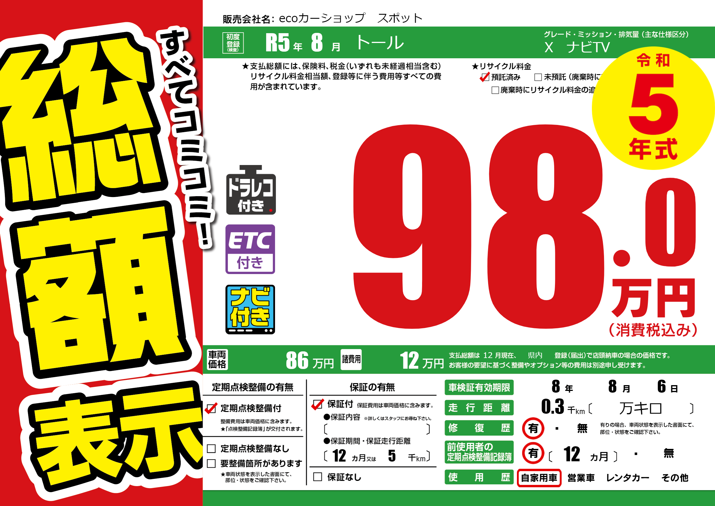 | 走行キロ | - | 初年度登録 | R5年8月 |