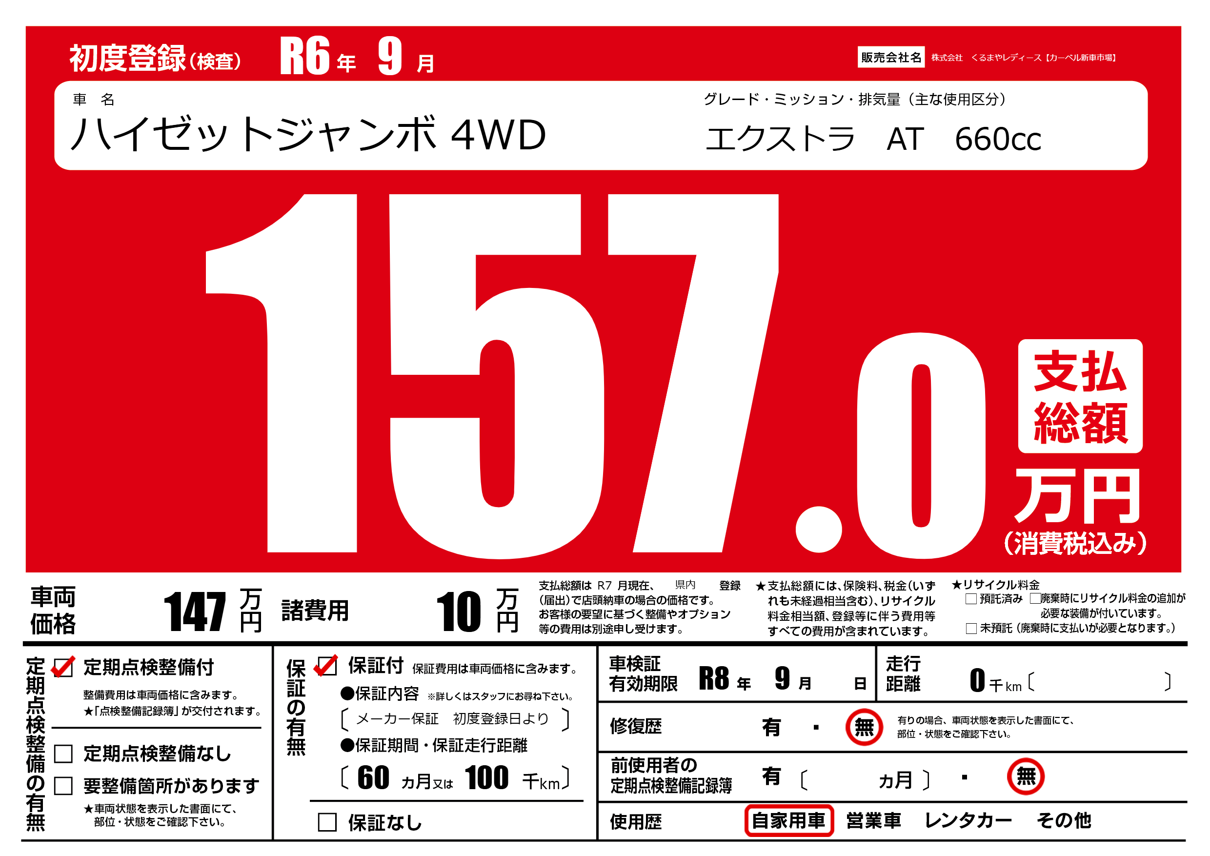 なし | 車検制限 | R8年9月---月 |