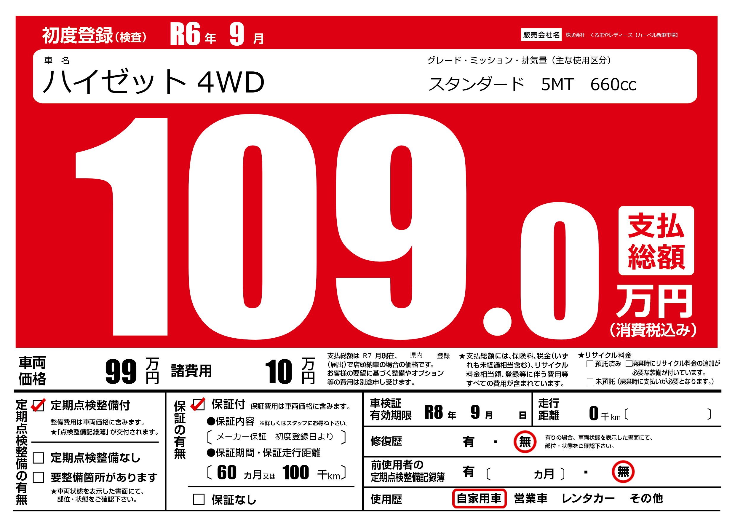 | 走行キロ | - | 初年度登録 | R6年9月 |