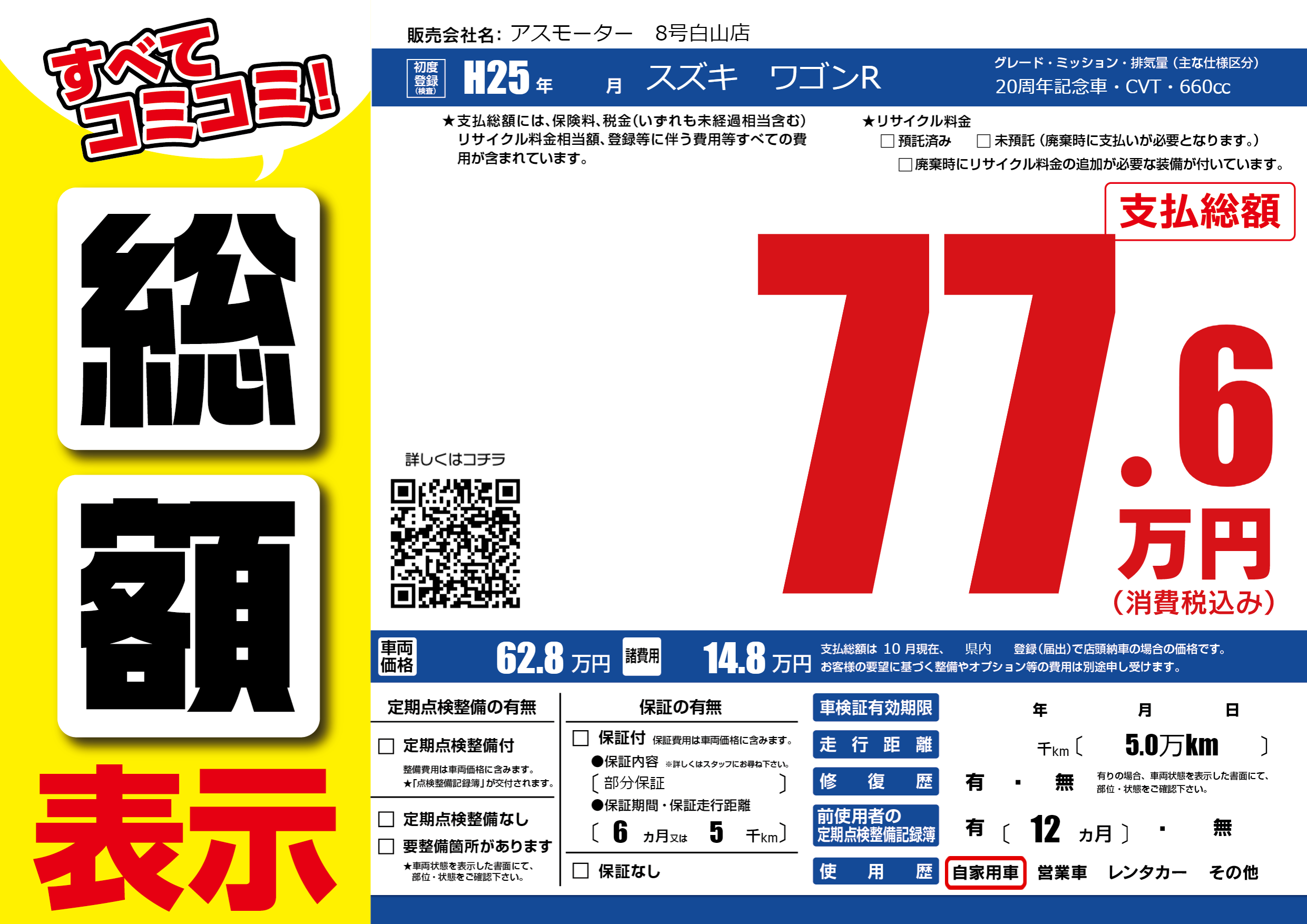 | 車名 | スズキ ワゴンR | グレード ミッション 排気量 |