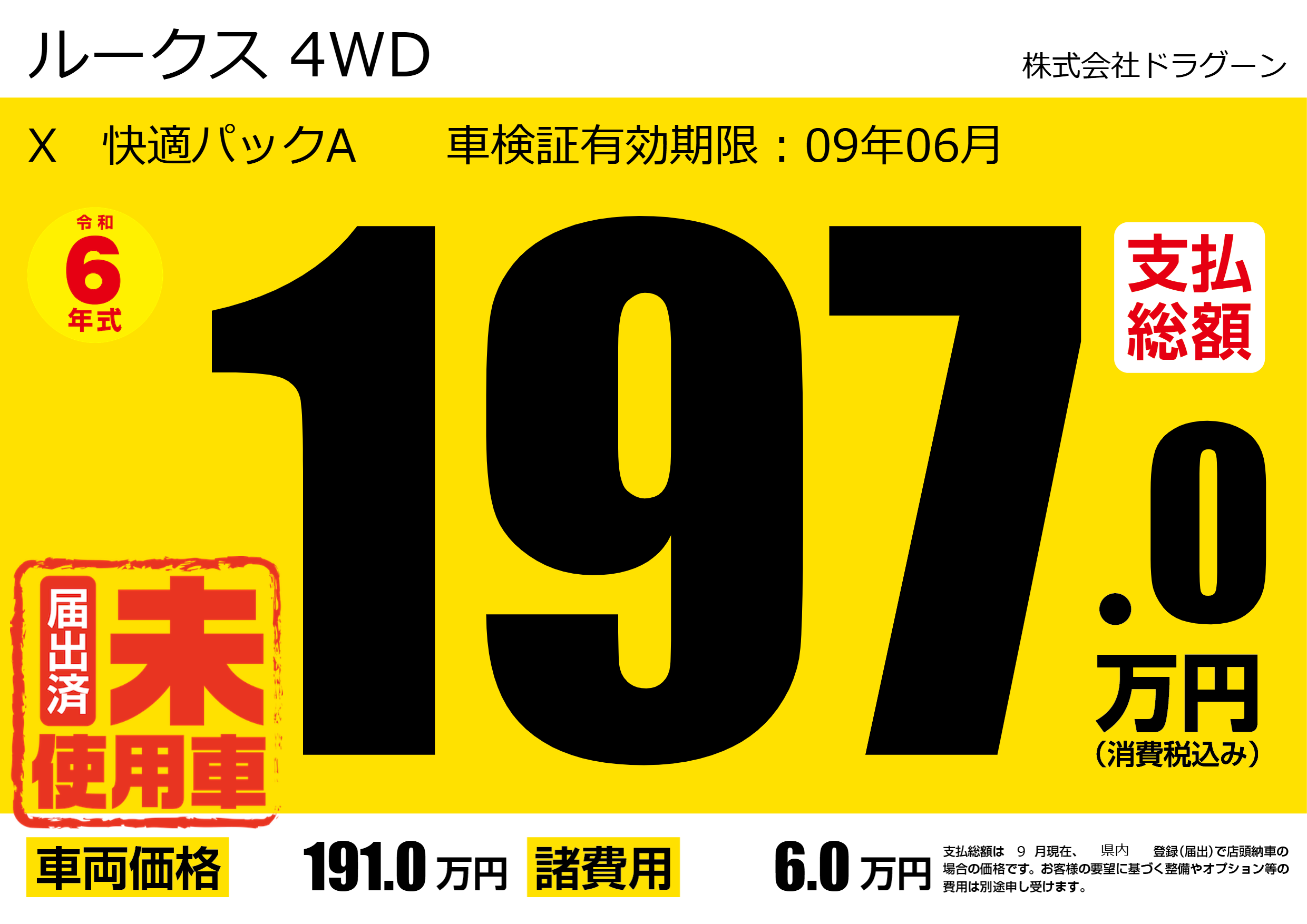 | 車名 | ルークス 4WD | グレード ミッション 排気量 |
