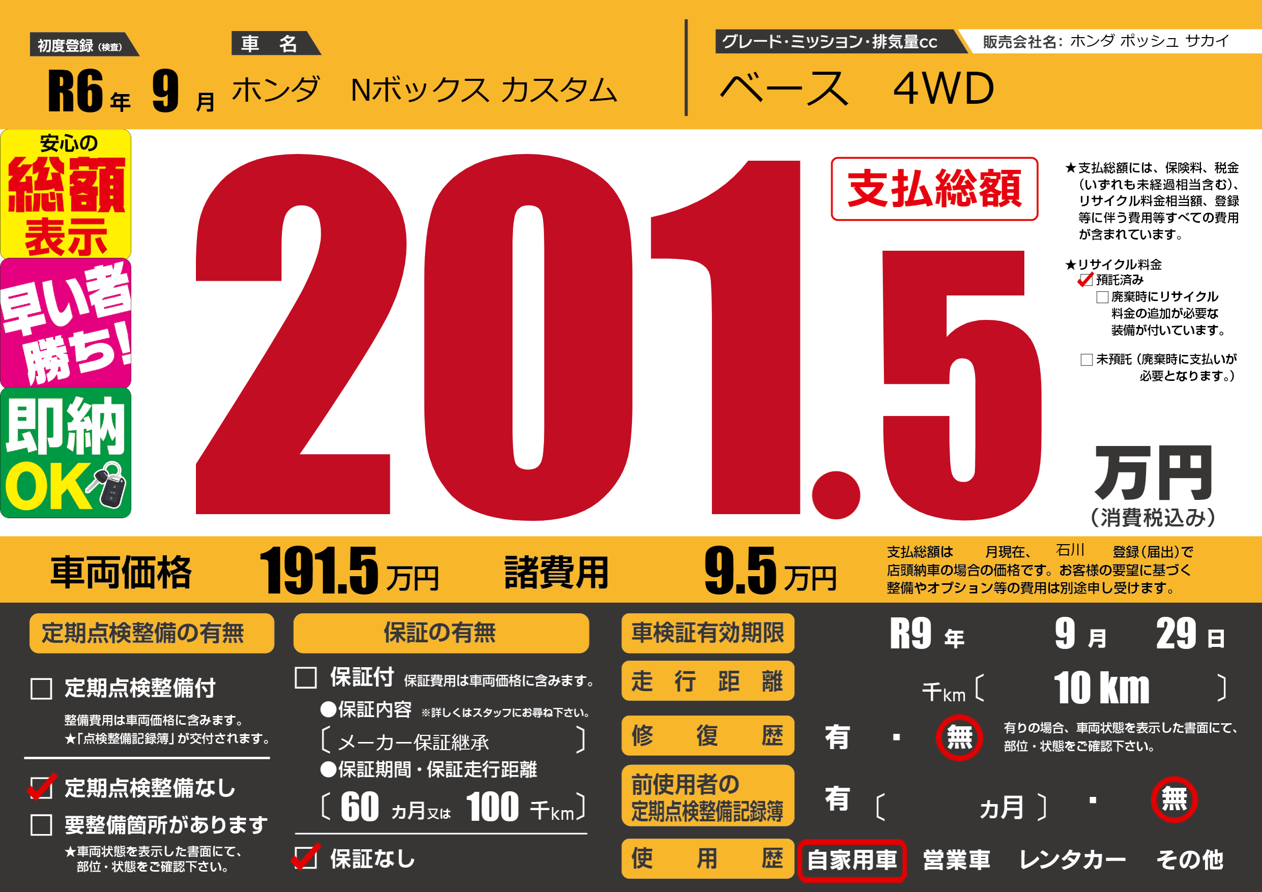 | 走行キロ | - | 初年度登録 | R6年9月 |