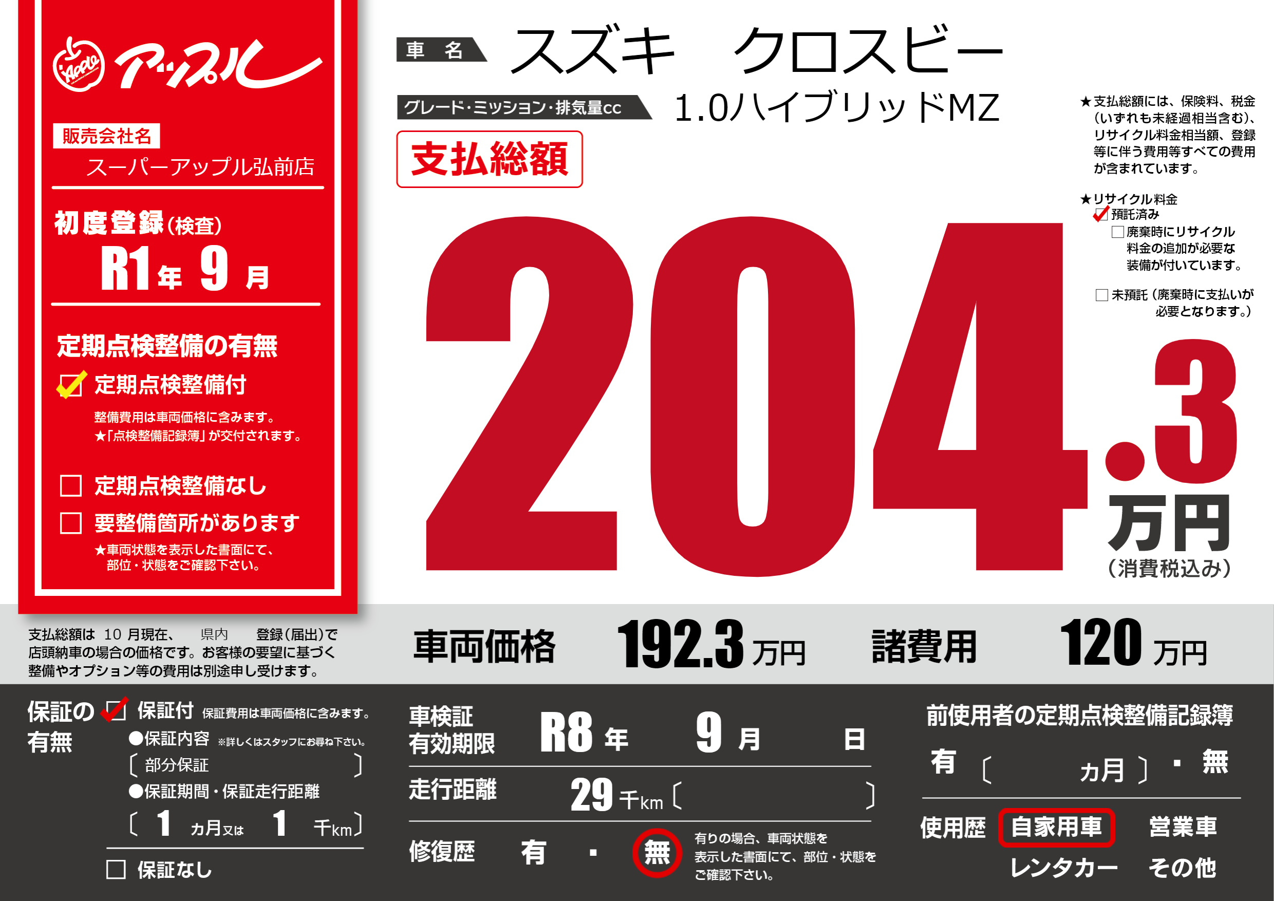 | 走行キロ | 2.9万km | 初年度登録 | R1年9月 |