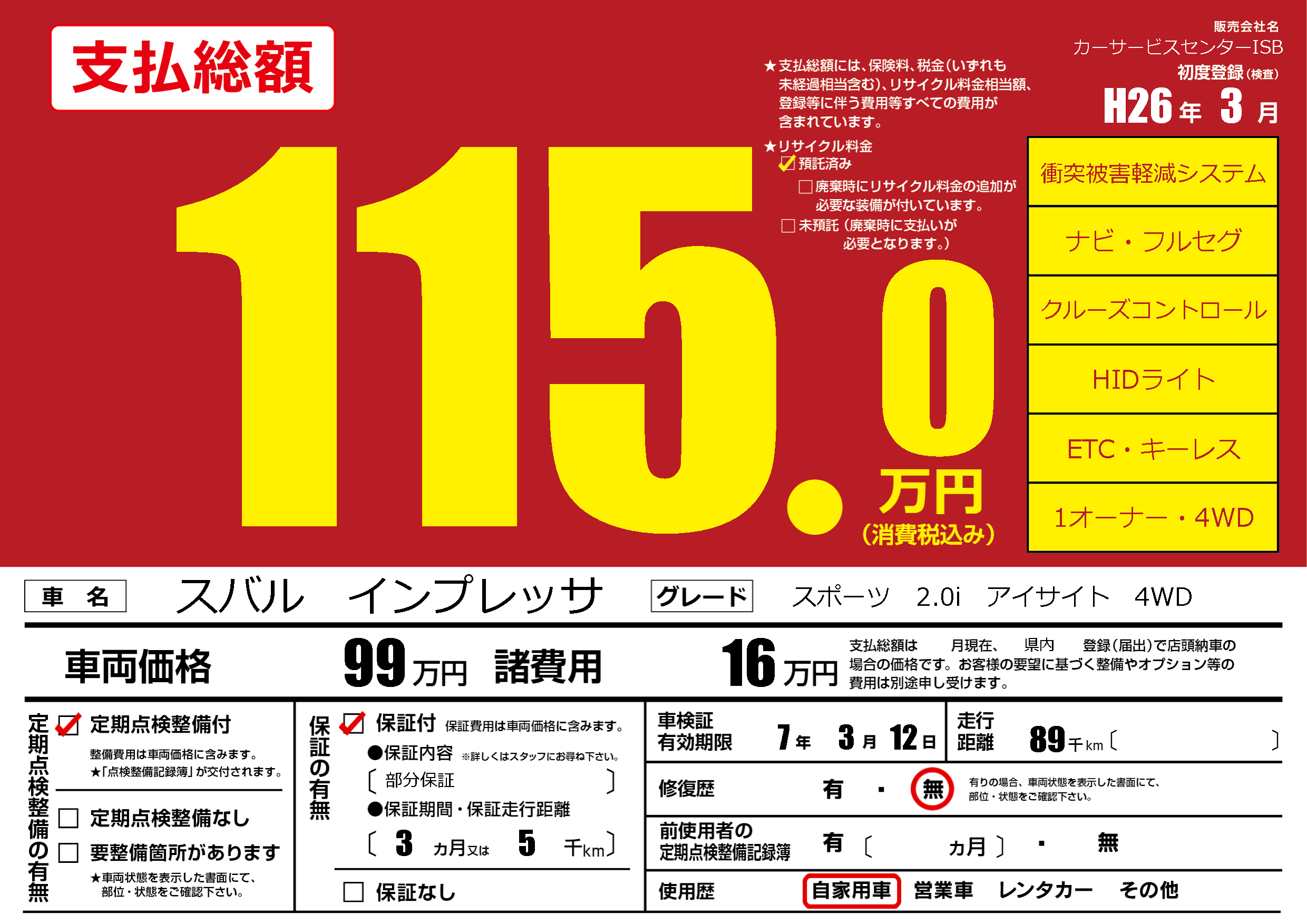| 車検制限 | 7年 3月 12日 | ||