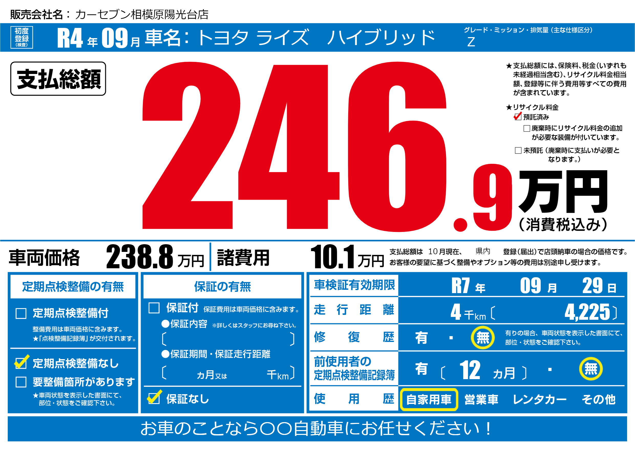 なし | 車検制限 | R7年09月29月 |