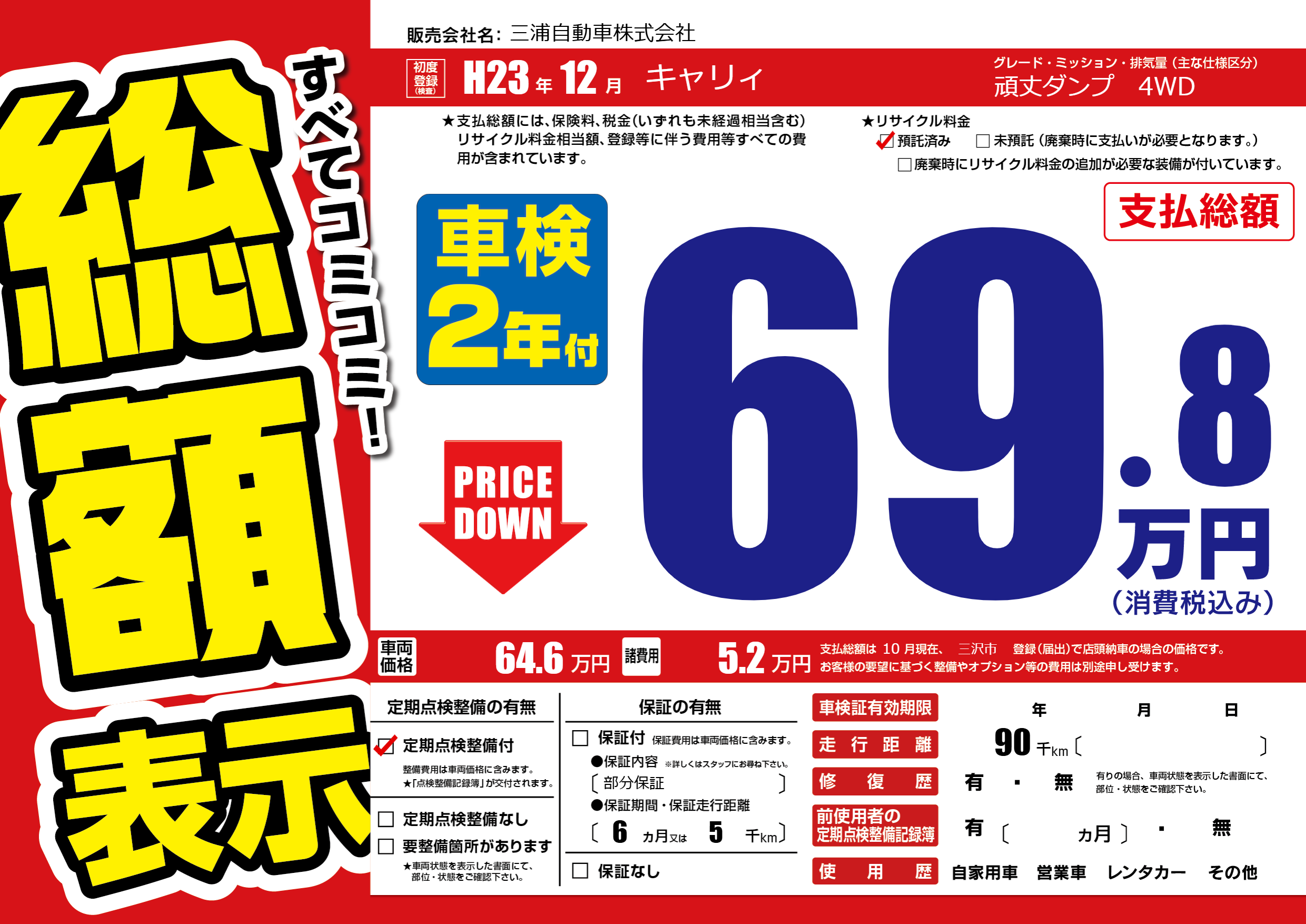 | 車名 | キャリィ | グレード ミッション 排気量 |