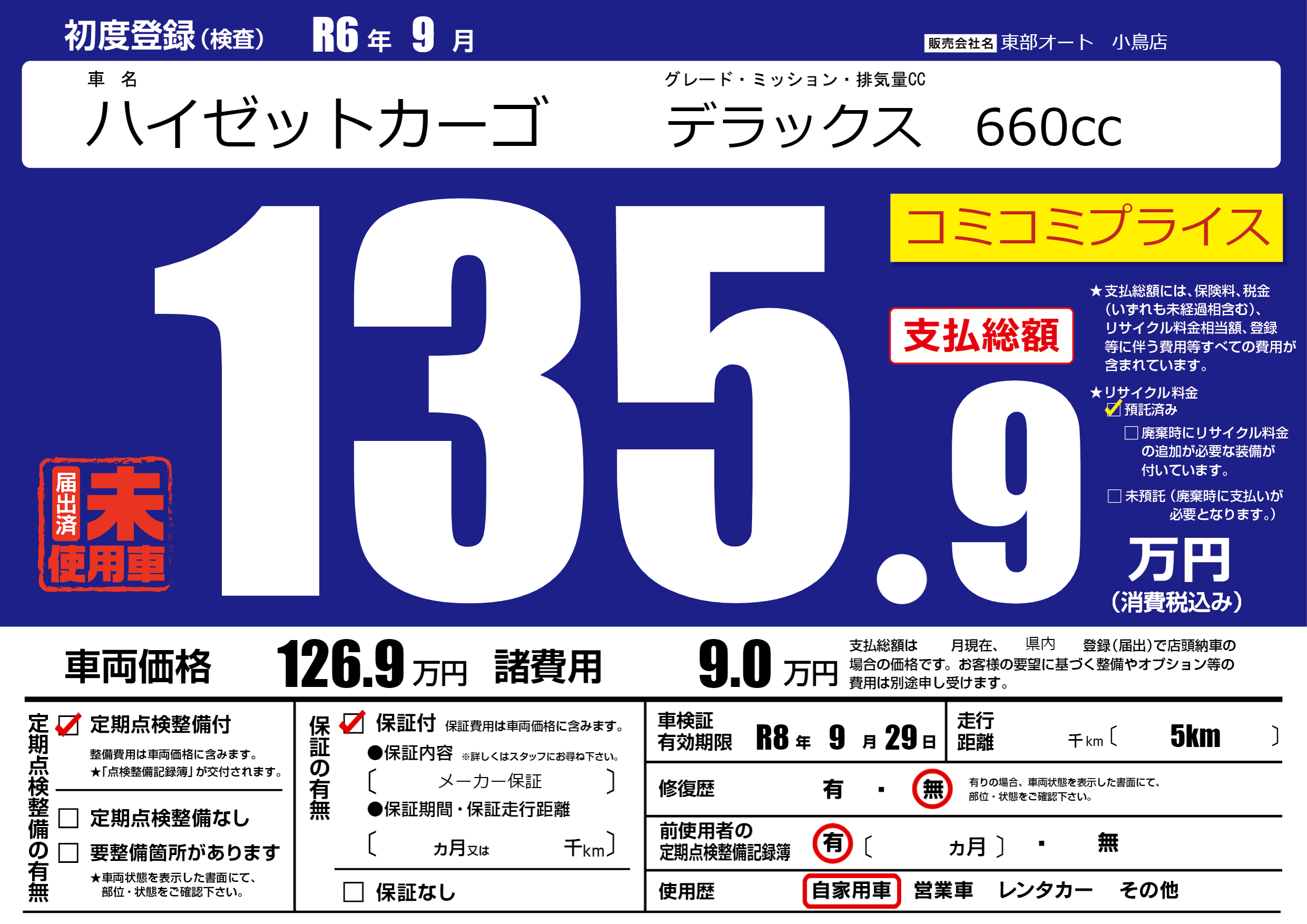 | 車検制限 | R8年 9月 29日 | ||