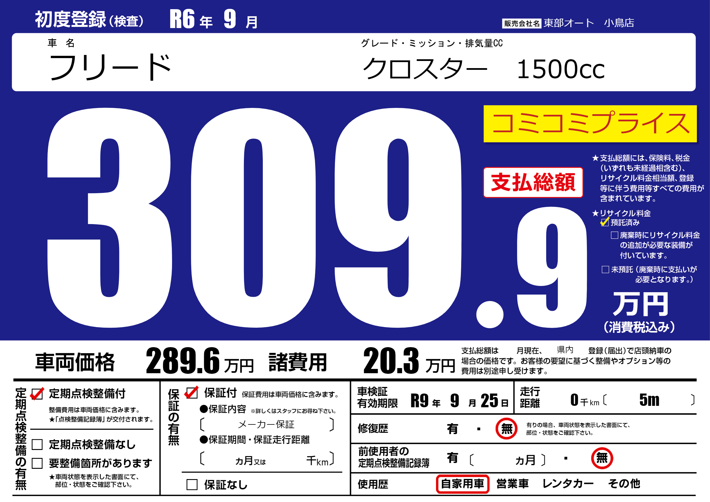 | 車検制限 | R9年 9月 25日 | ||