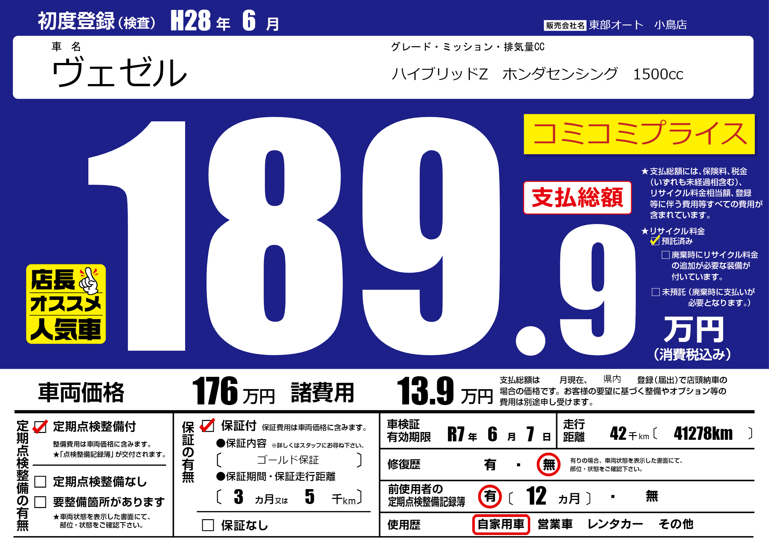 | 初年度登録 | H28年6月 | ||