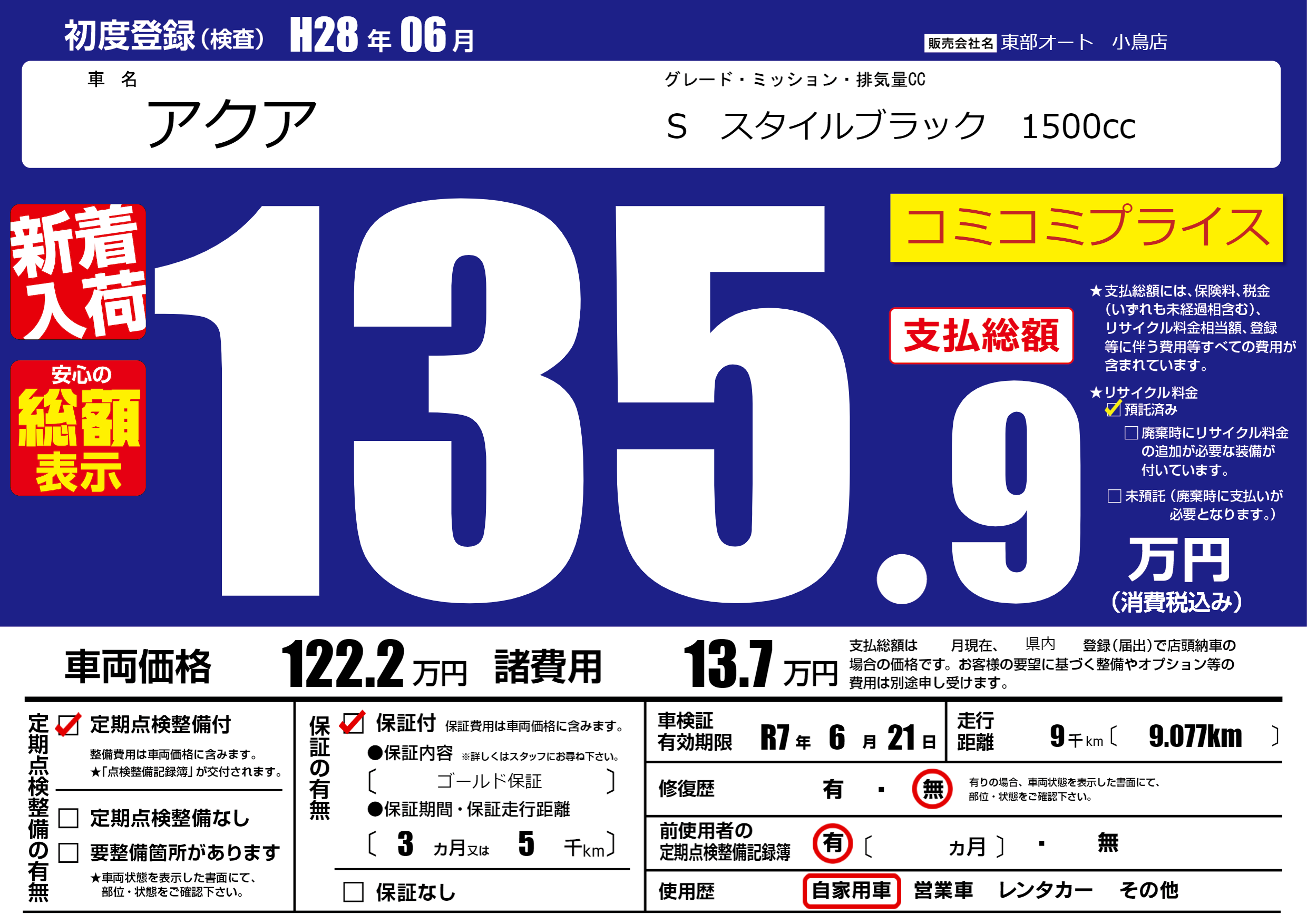 保証付き 保証内容( ゴールド保証) 3ヶ月または5千km |