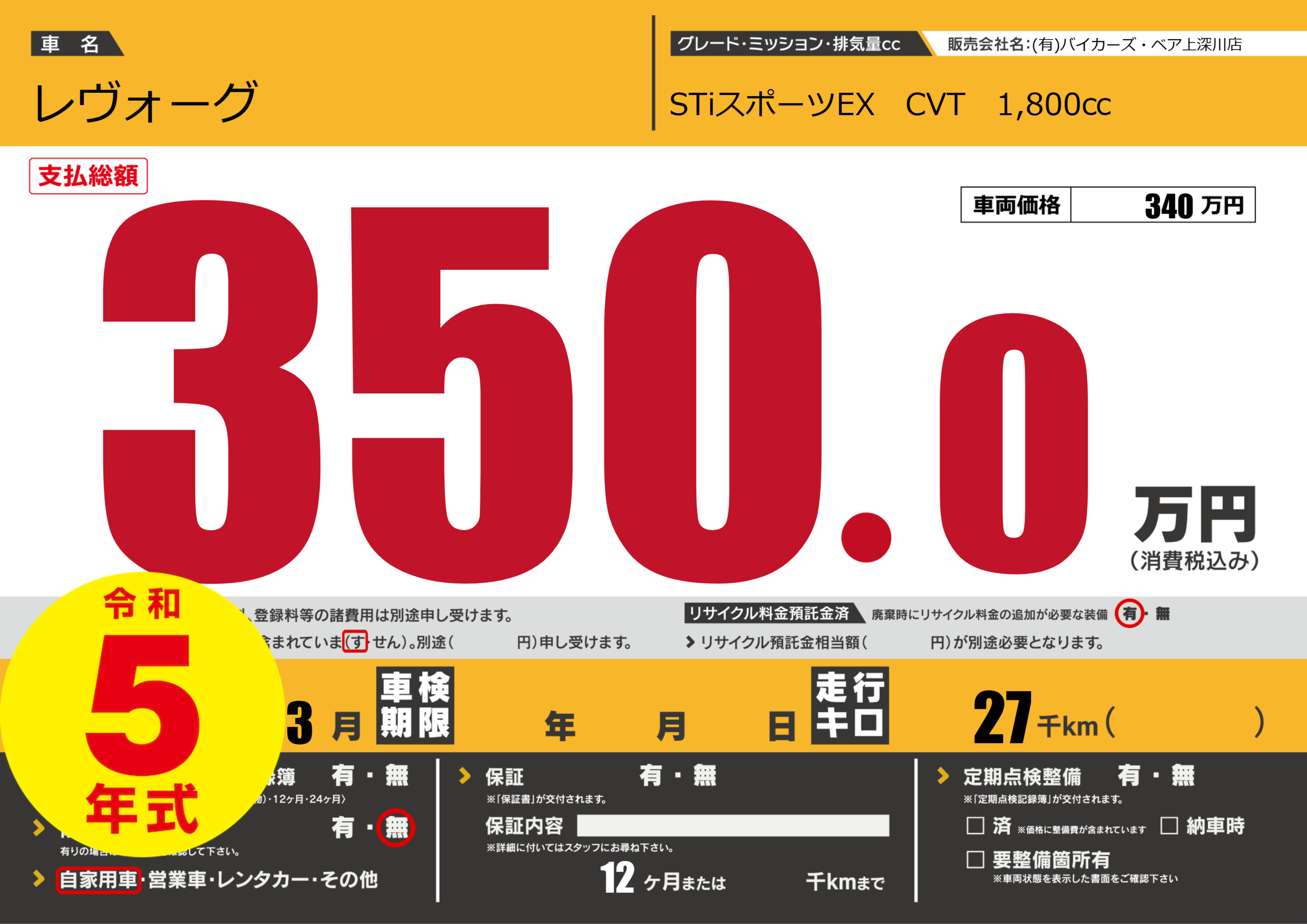 | 初年度登録 | R5年3月 | ||