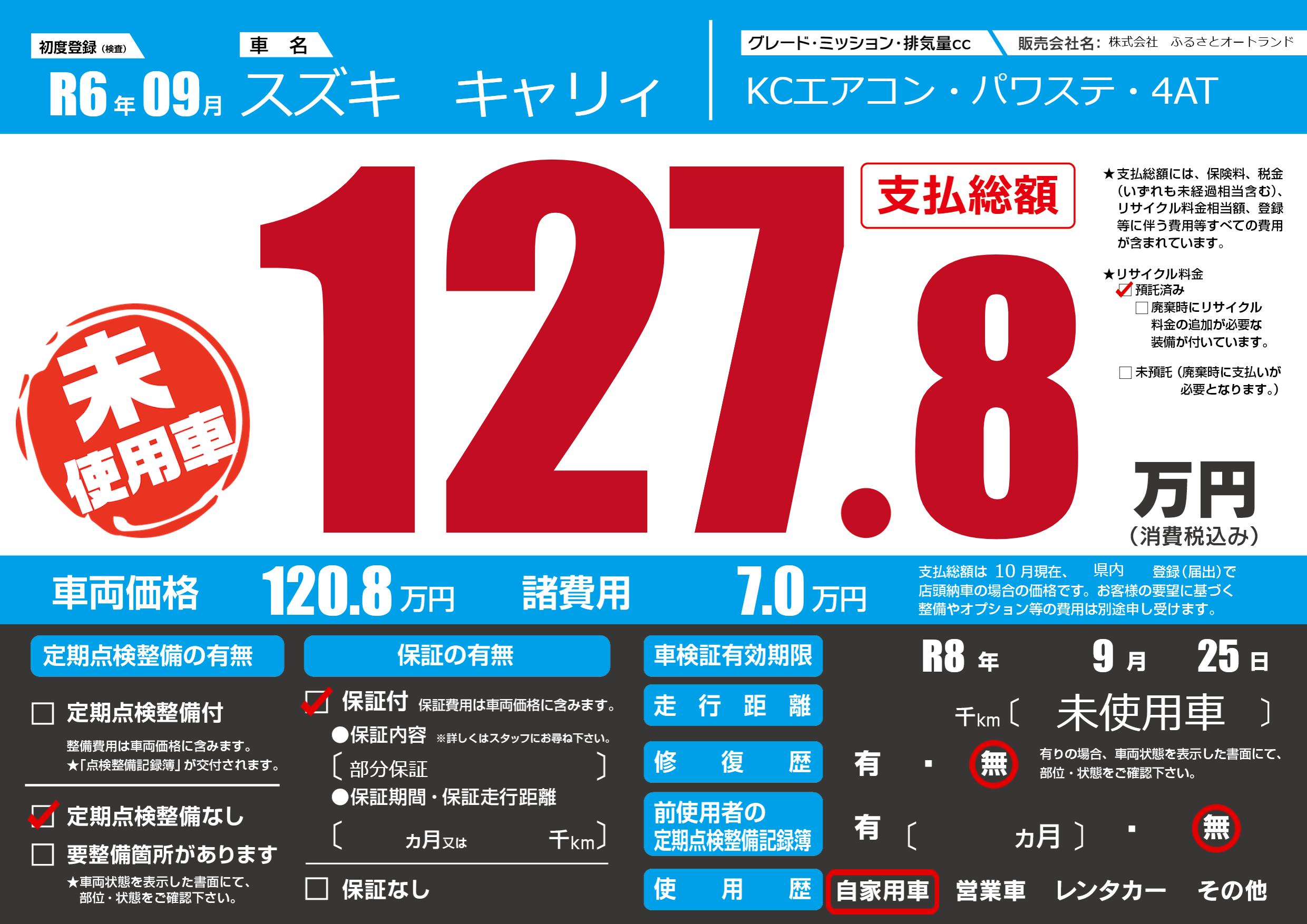 なし | 車検制限 | R8年9月25月 |