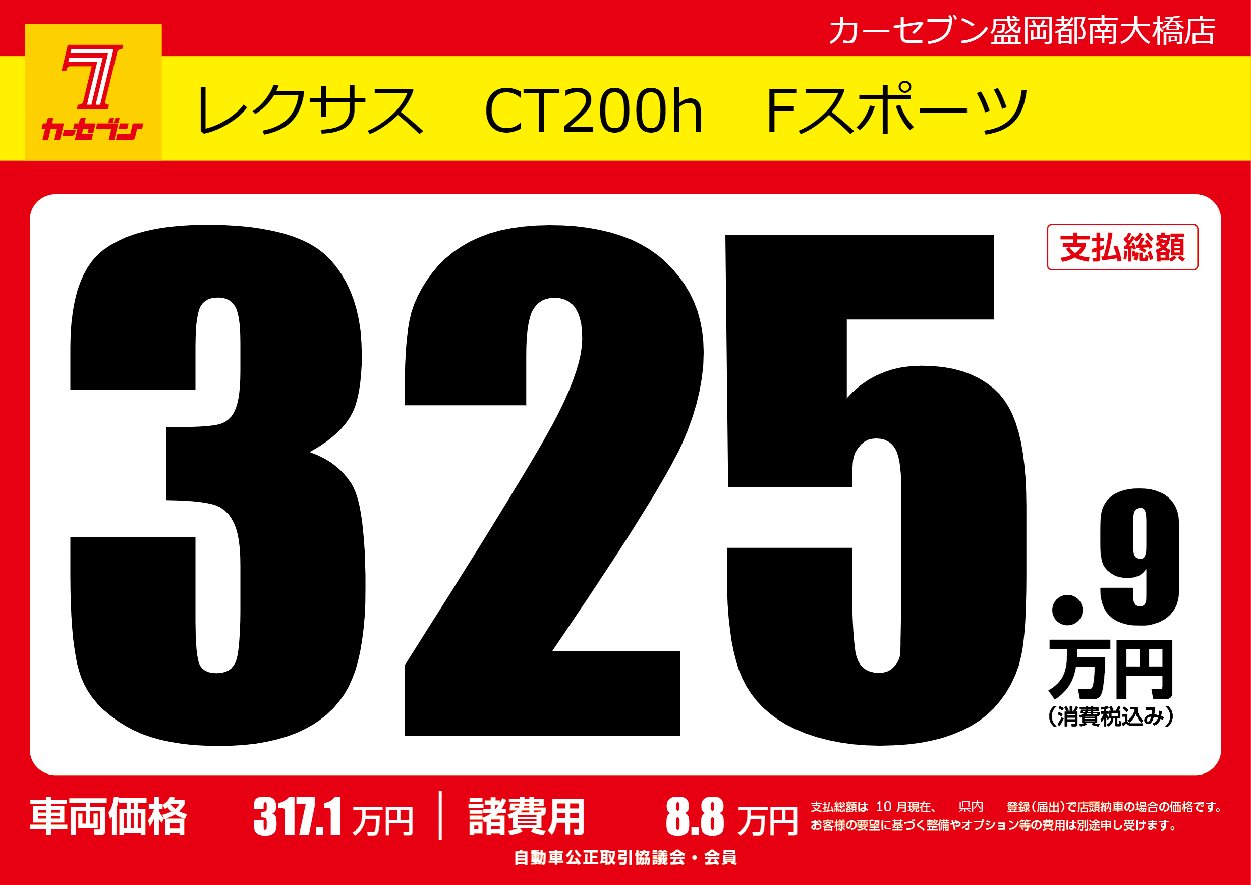 | 車名 | レクサス CT200h Fスポーツ | グレード ミッション 排気量 |