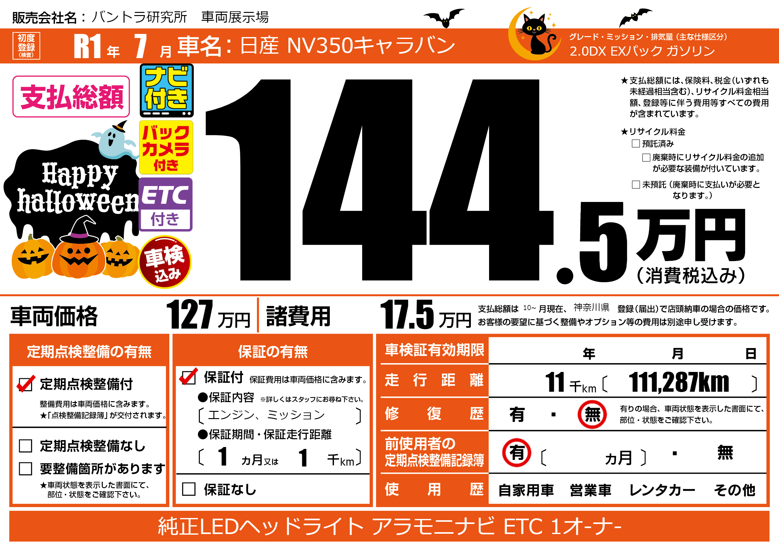 | 走行キロ | 1.1万km | 初年度登録 | R1年7月 |