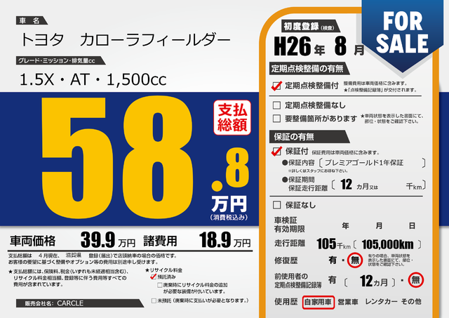 保証なし 保証内容(部分保証) 12ヶ月または()千kmまで |