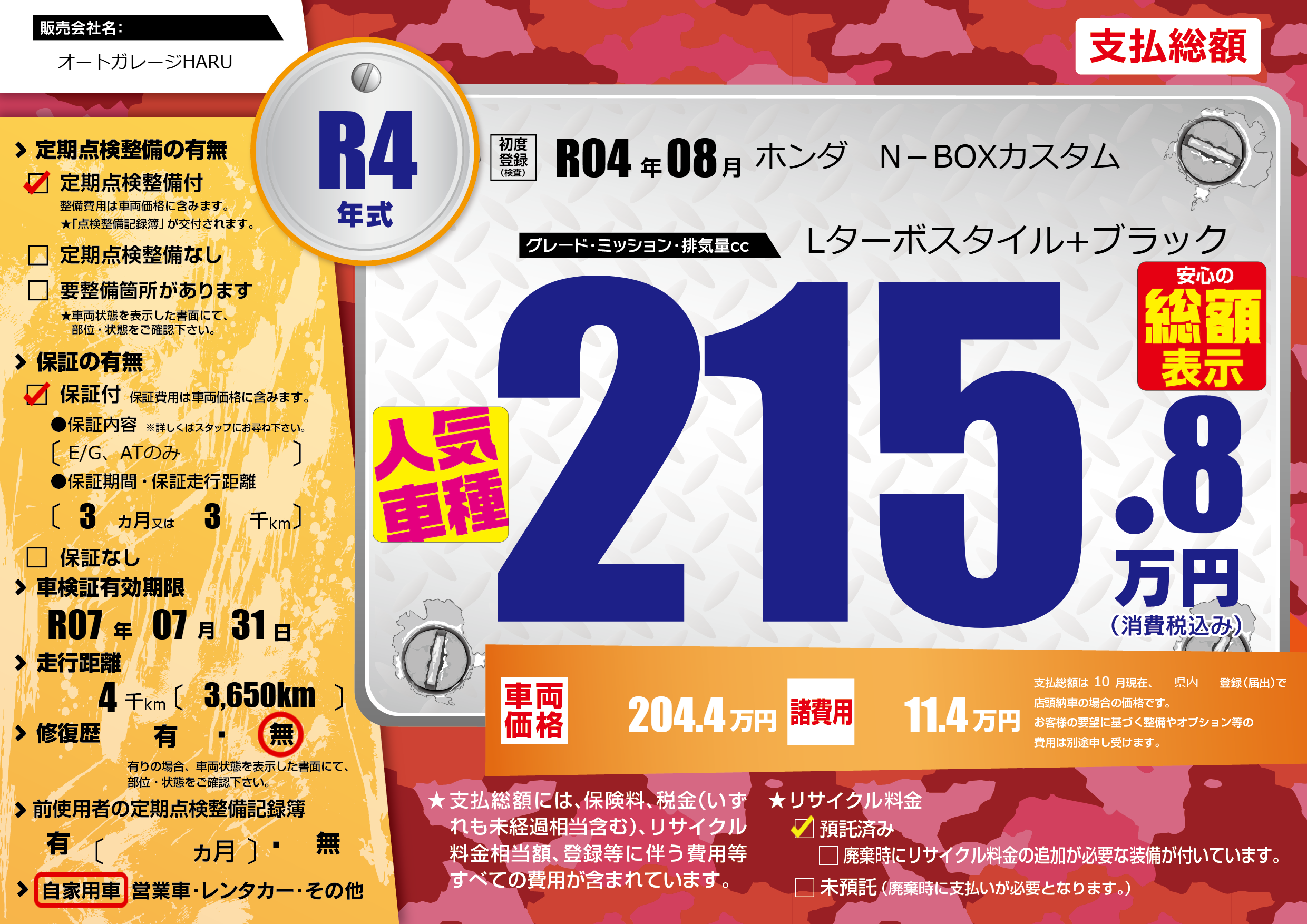 車検制限 R07年 07月 31日