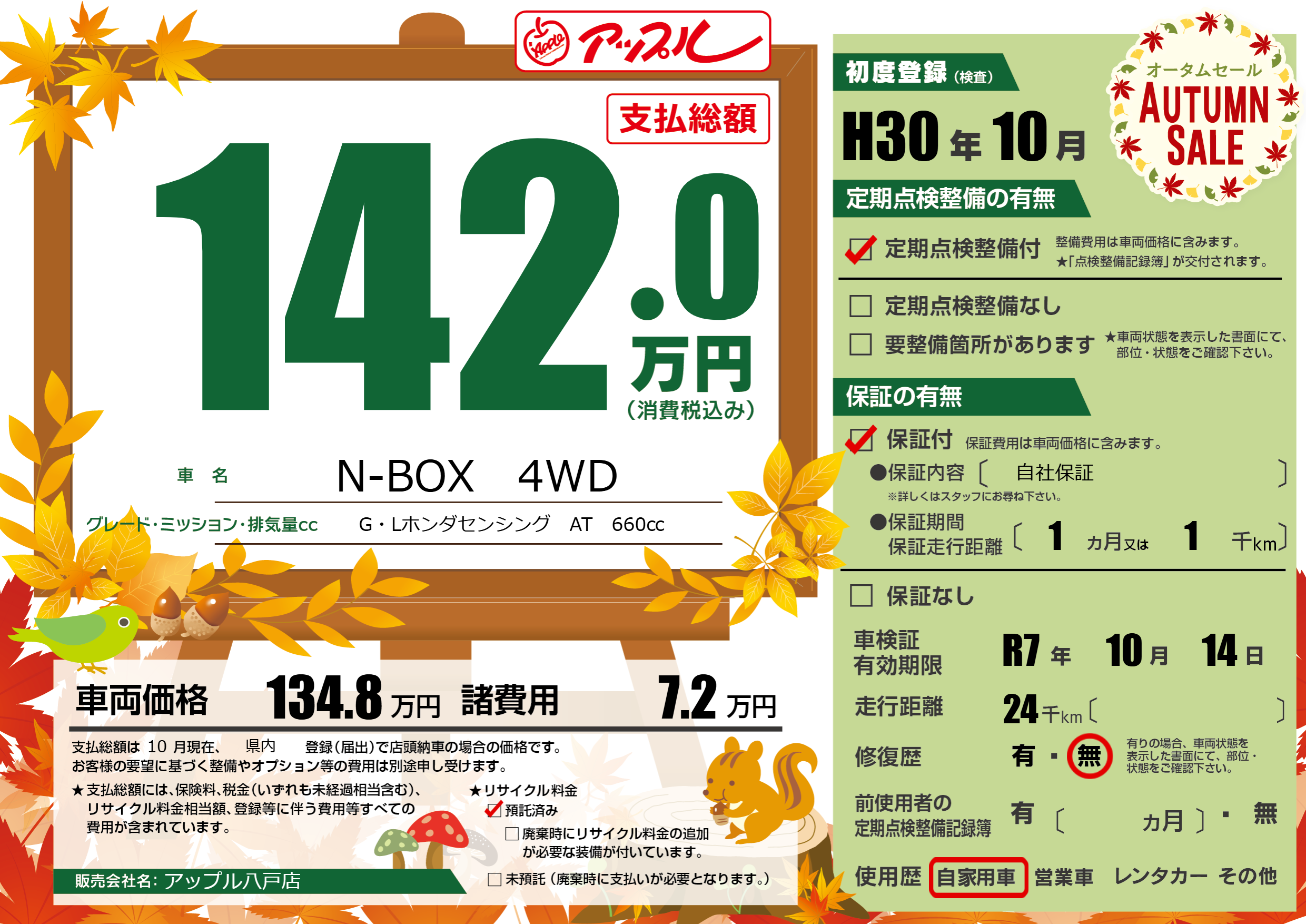 | 車名 | N-BOX 4WD | グレード ミッション 排気量 |