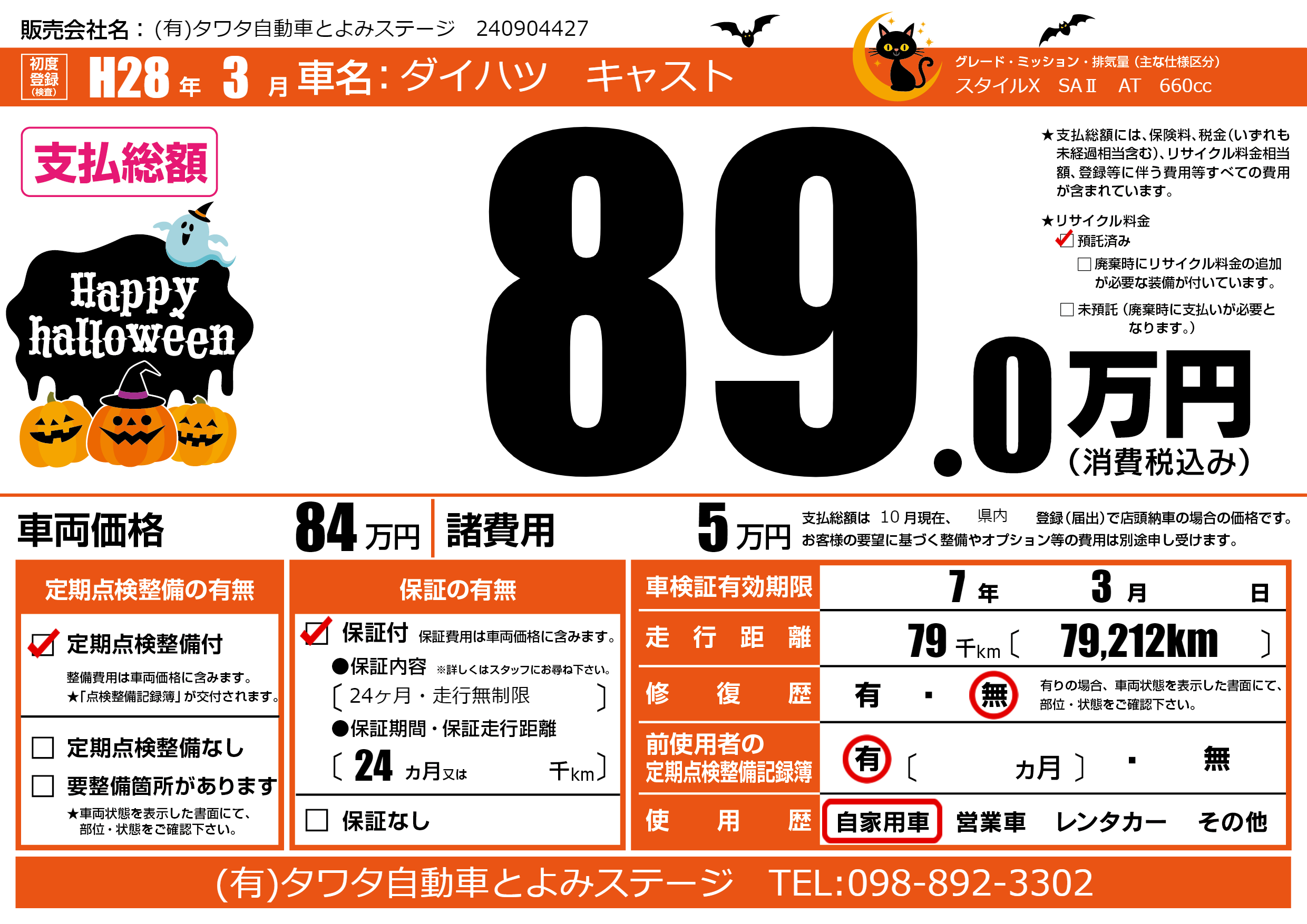 | 走行キロ | 7.9万km | 初年度登録 | H28年3月 |