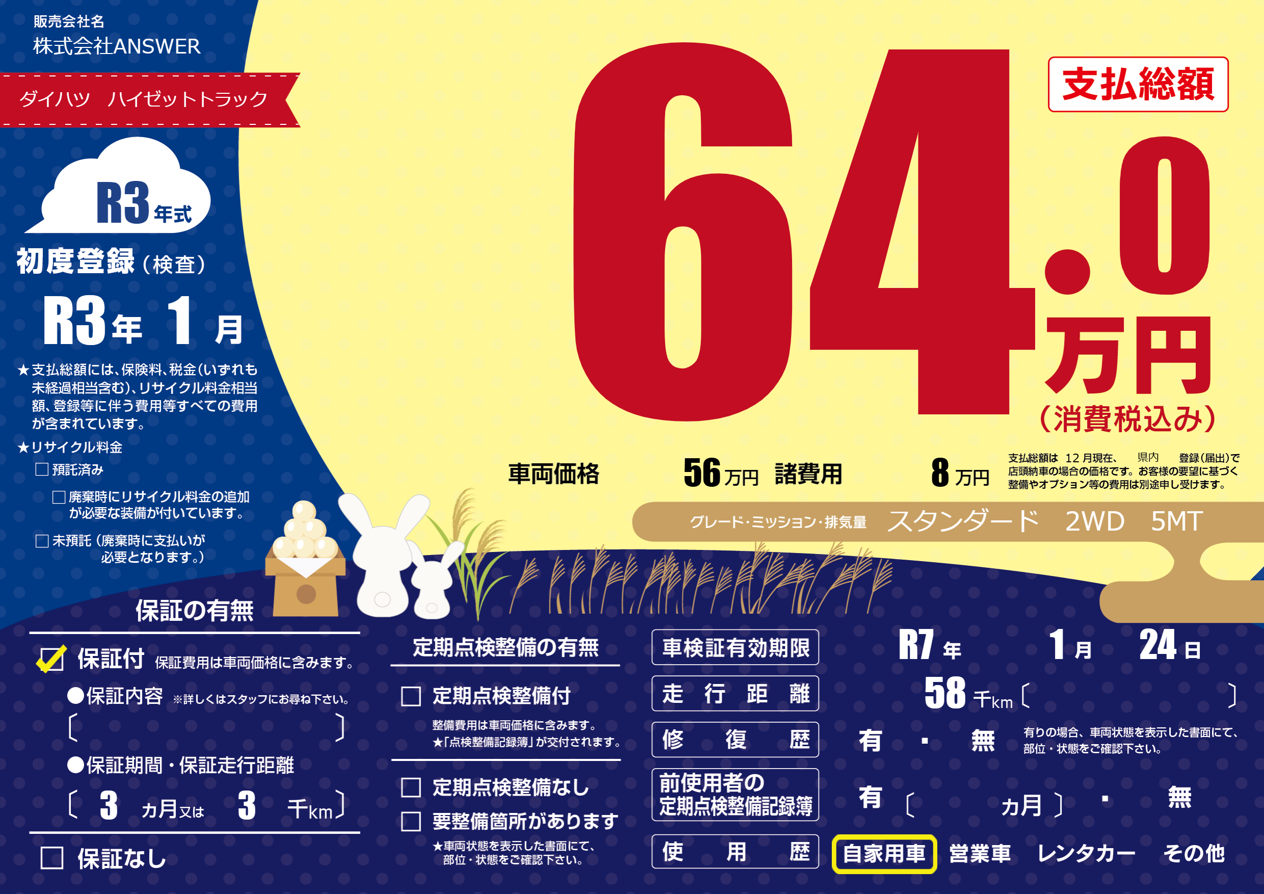| 初年度登録 | R3年1月 | ||