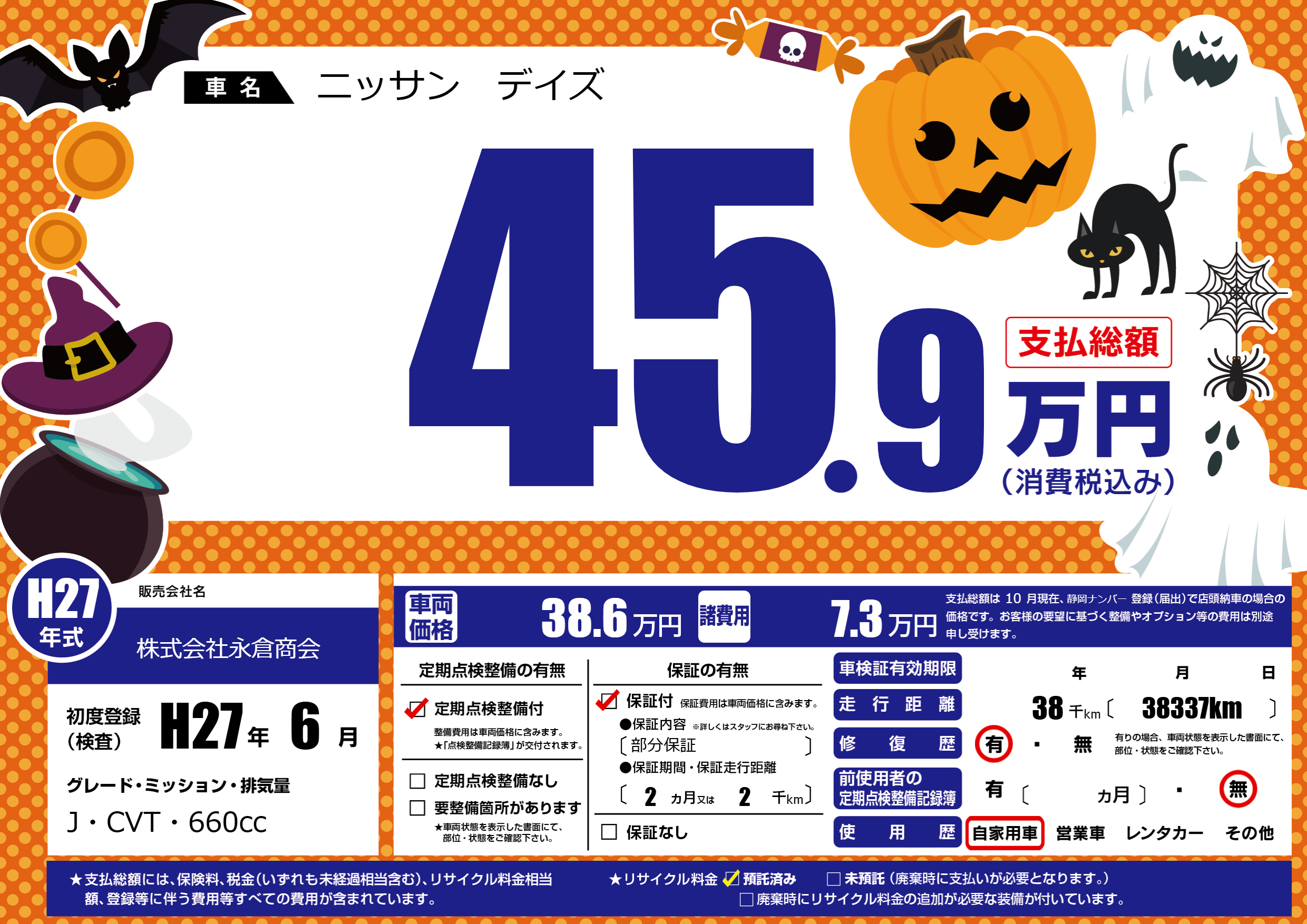 | 車名 | ニッサン デイズ | グレード ミッション 排気量 |