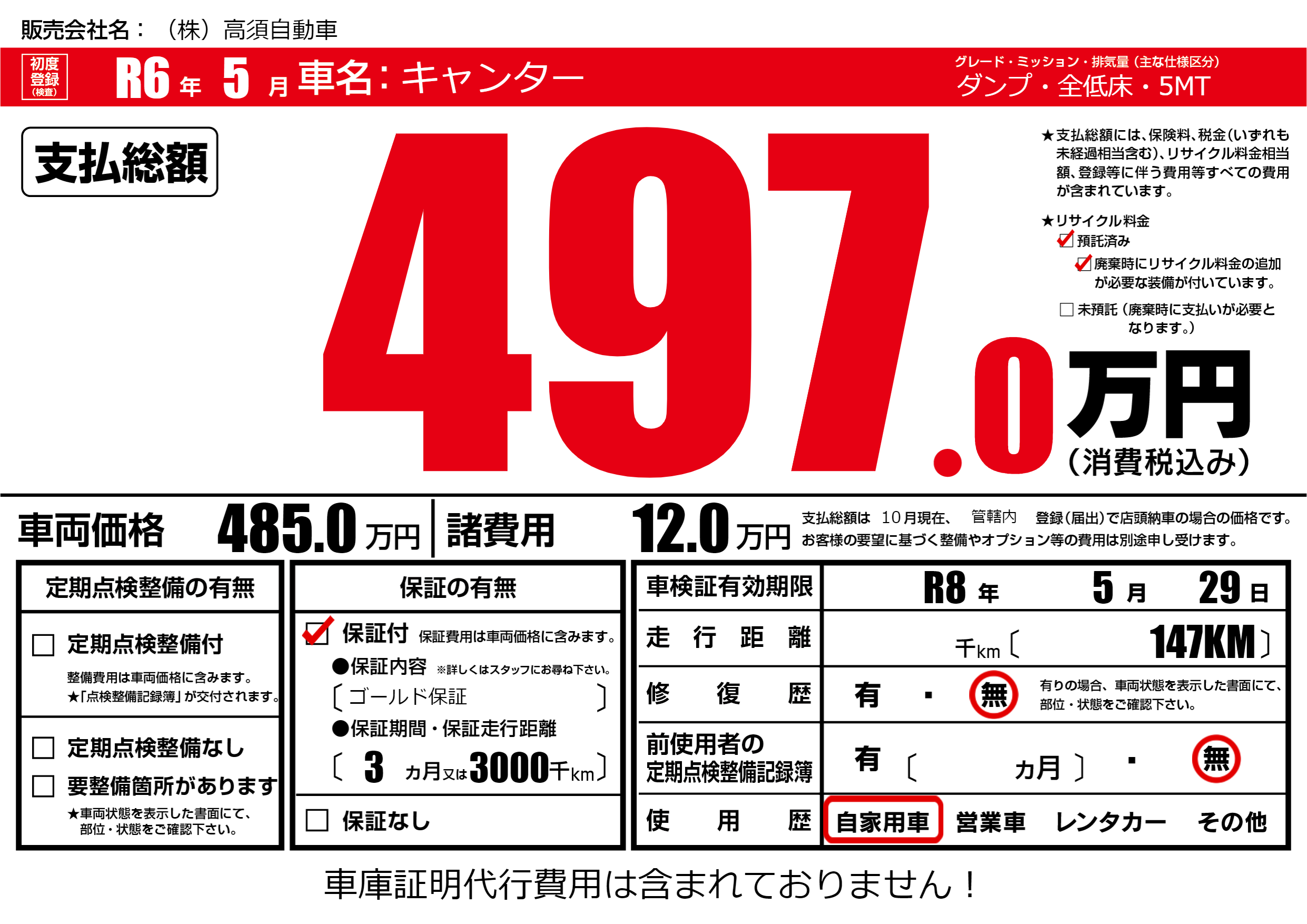 保証内容(ゴールド保証) 3ヶ月または3000千km