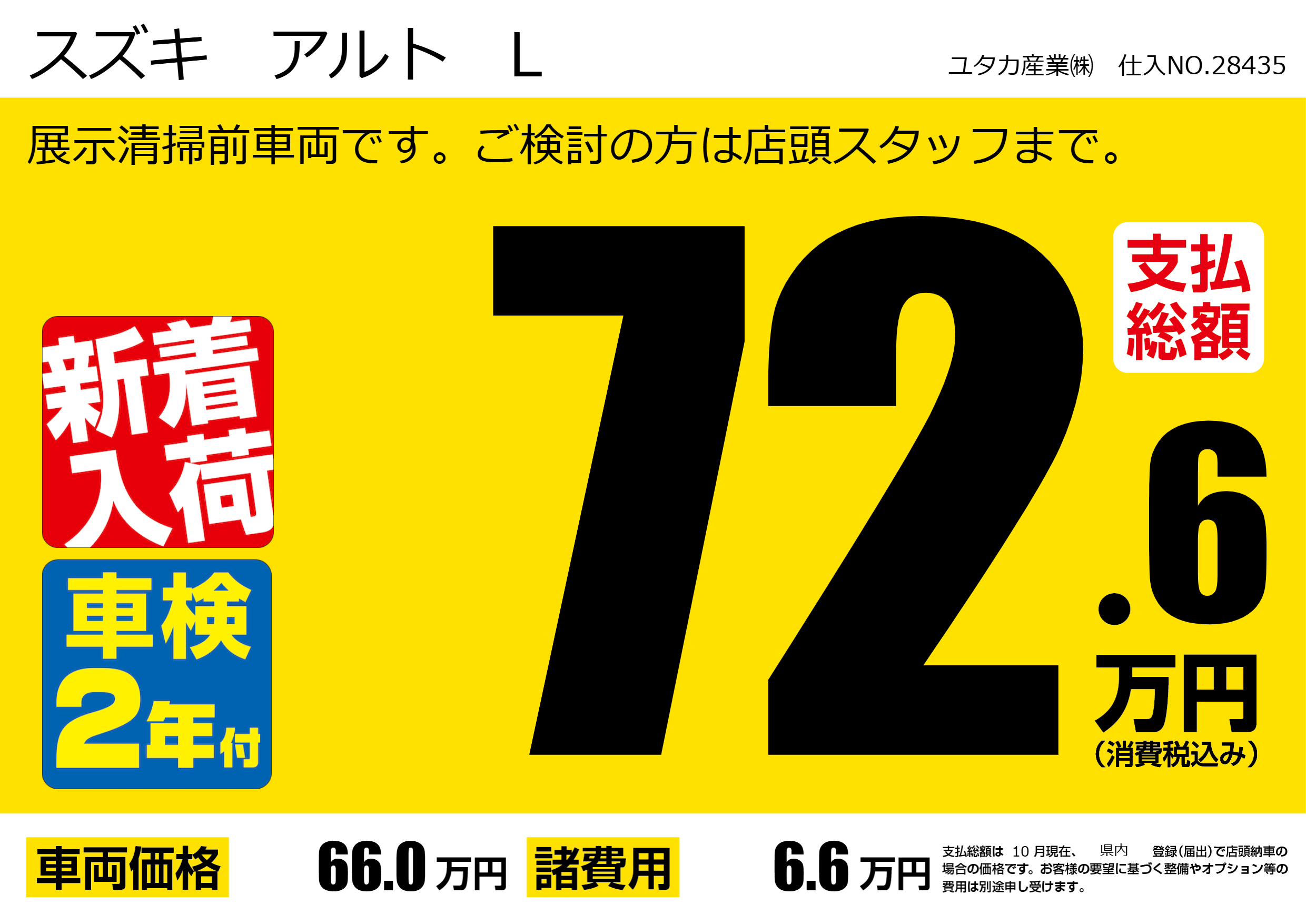 | 車名 | スズキ アルト L | グレード ミッション 排気量 |